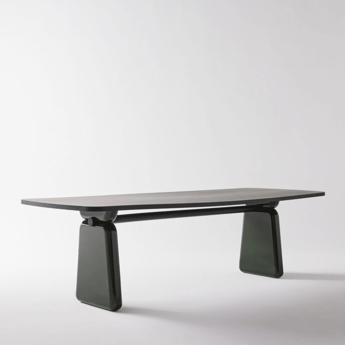 The base captures the attention. Composed with a sculptural, almost archaic effect, it transmits to the Lito table the solemnity of what lasts over time. And it adapts to underline the personality of a study area, as of a living room. The possible combinations between the finishes of the rectangular top and the base, indulge the expression and personal taste, reflecting the spirit of the context. The set of geometric shapes are then enhanced by the cylindrical bar that runs under the top. Just a detail, much more than a detail.