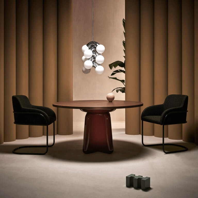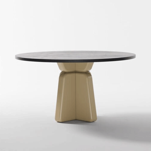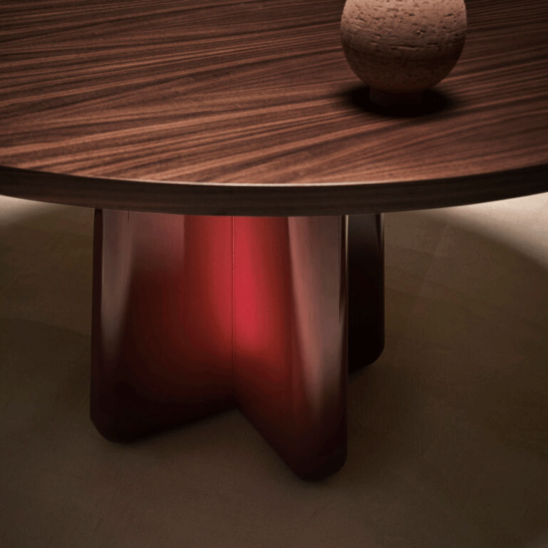 It was born with a circular top and a convivial character. The diameter, available in 140 or 160 centimetres, is welcoming and comfortable for diners as well as for an informal meeting. Aereo, recomposes, with an original visual effect, the elements of the base of the rectangular version of the table of the same name, making the monolithic concept that denotes its appearance more explicit. Also in Lito Round the composition between top and base is changeable, combining different essences and lacquered colours that tell the impeccable execution of its creation.