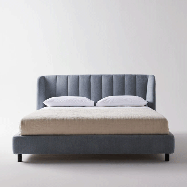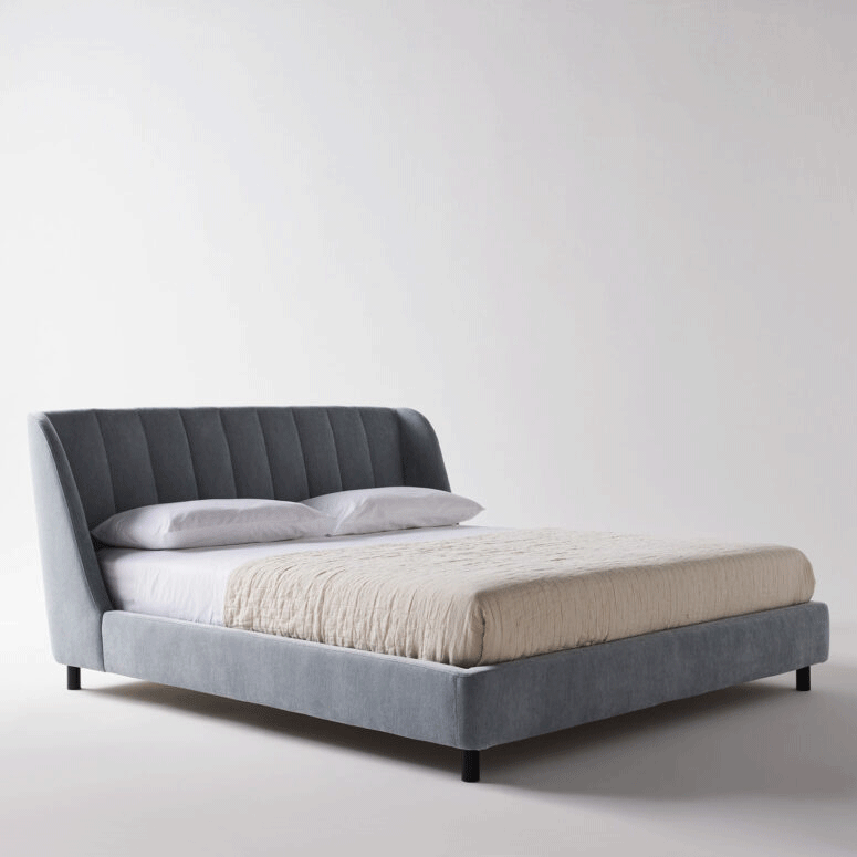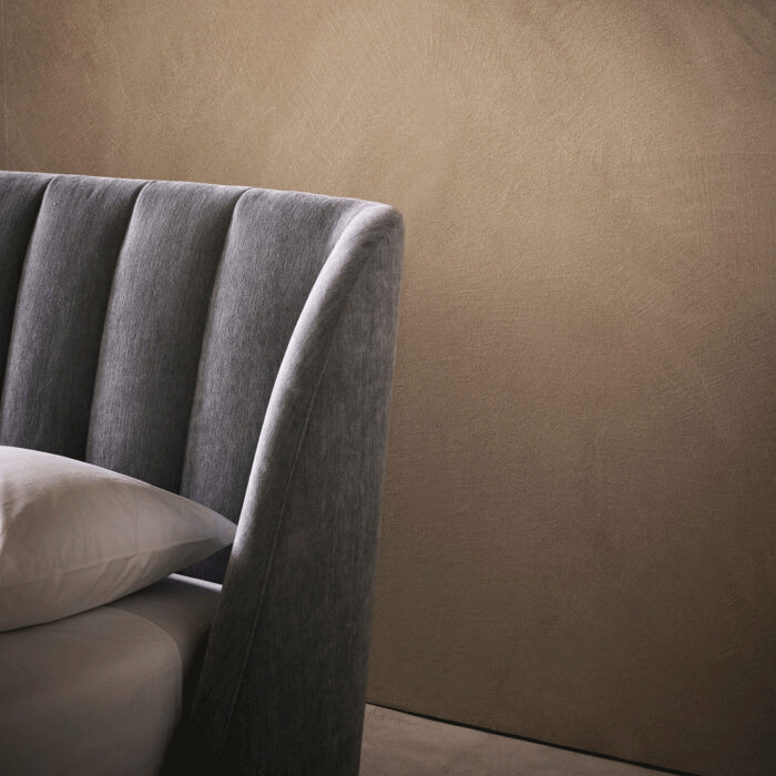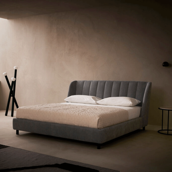 A project with a rigorous design, but with soft and light lines. The Yard double bed is equipped with a curved headboard that, embracing and wrapping the body of the bed, becomes its true protagonist. Elegantly padded, it is characterized by refined visible vertical stitching. In a visual and sensorial continuum, the headboard and bed frame, entirely covered, draw a single profile without any decorative or structural interruption.