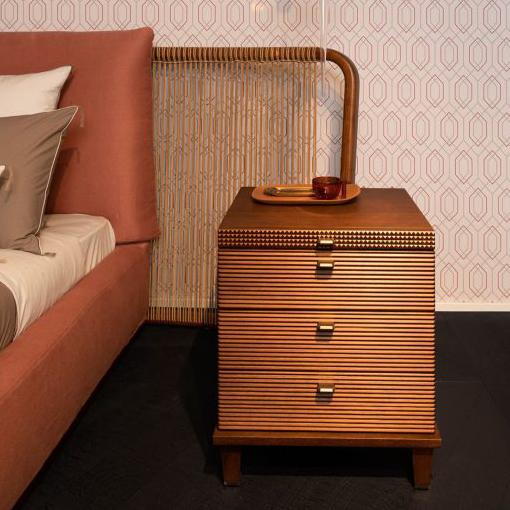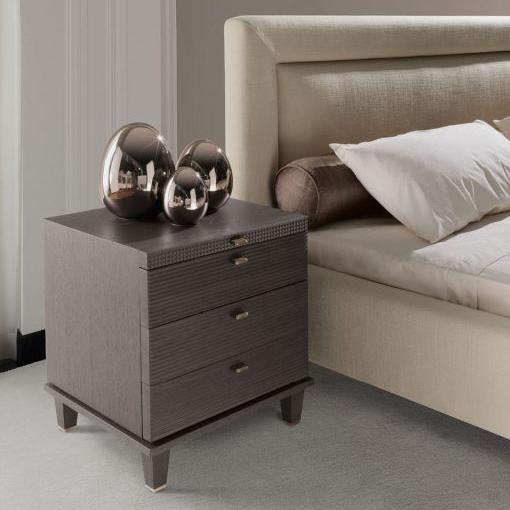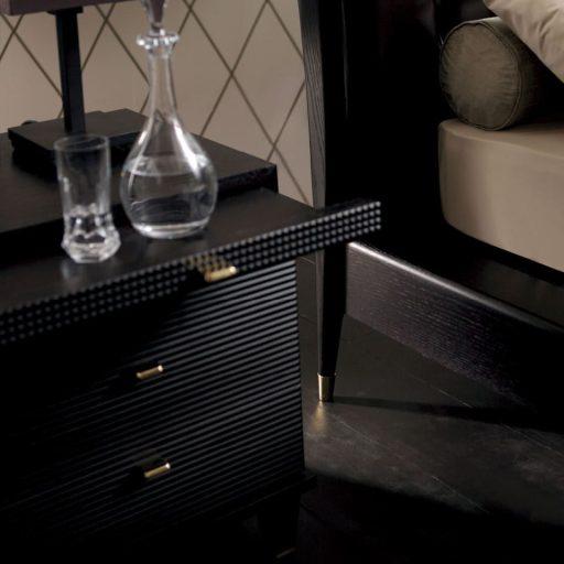 The Dimitri three-drawer bedside table stands out for the exceptional workmanship of the solid wood fronts. The care and attention to detail make this piece of furniture a unique and exclusive creation. The drawers offer ample space and functionality thanks to assisted closing.
