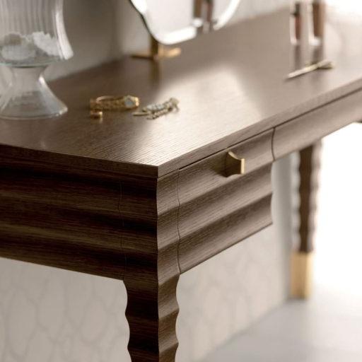 The Elettra two-drawer toilet is characterized by an elegant wavy workmanship on the fronts, sides and legs. The soft-close drawers offer ample space and functionality.