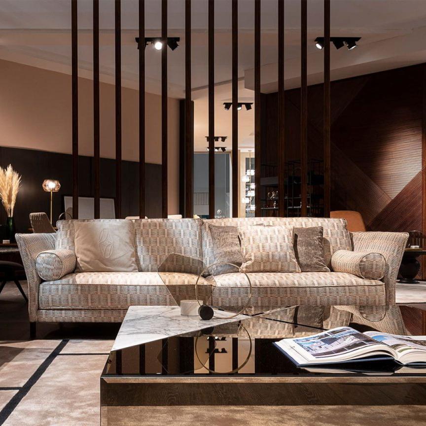 New Cosmo is a sofa with a wooden structure with a triangular section, which gives the collection a renewed elegance and celebrates the brand’s mastery in woodworking .
