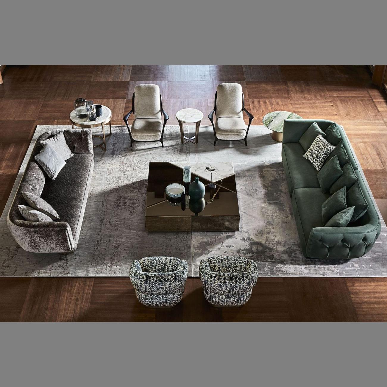 To create a living area with an impactful contemporary style atmosphere, choosing the right sofa is essential. In this sense, Simon and Ivonne represent excellent solutions : the first with a refined capitonné work on the external profile of the backrest, the second on the internal part. The models also differ in depth, to adapt to different project needs and guarantee maximum comfort. To complete the furnishings of the living area, the Callas and Sophie armchairs combine comfort and style in a perfect way, and the Cyrano, Raoul and Gabriel coffee tables give a touch of refinement thanks to their craftsmanship and the fine materials used.