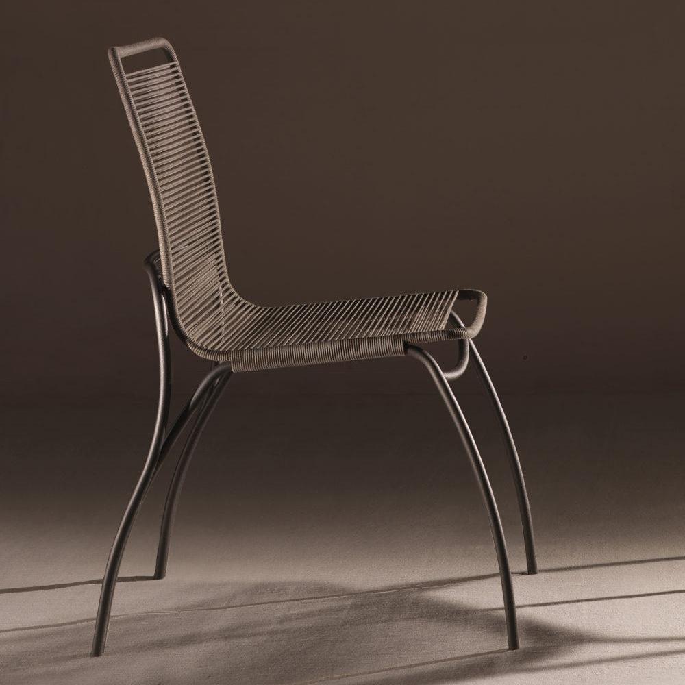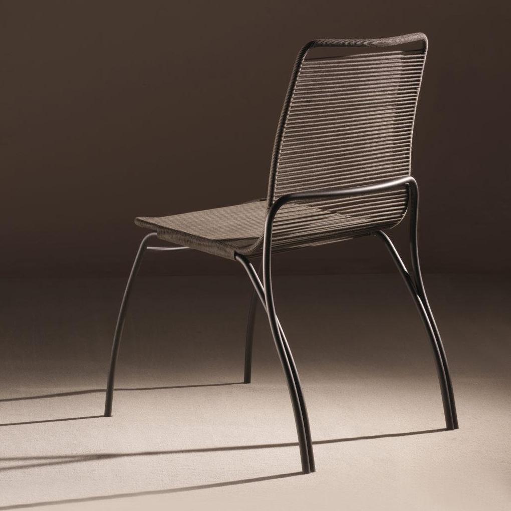 Lacquered tubular metal frame, treated cotton ropes for outdoor use, all-metal frame version with upholstered leather cover with removable cushion (also available for outdoor use)