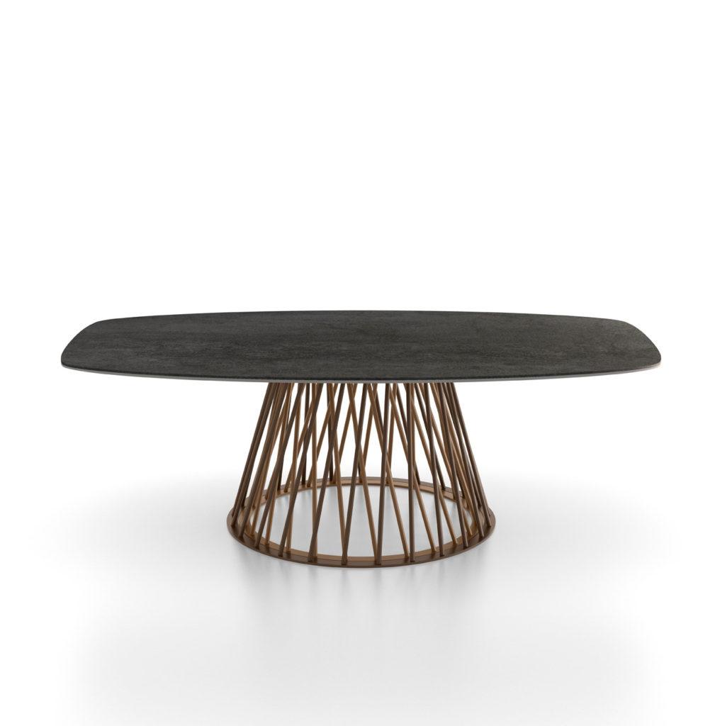 Tubular metal frame combinable in two colors , top rectangular version with curved sides in tempered glass or ceramic on lacquered MDF support (also available for outdoor use)