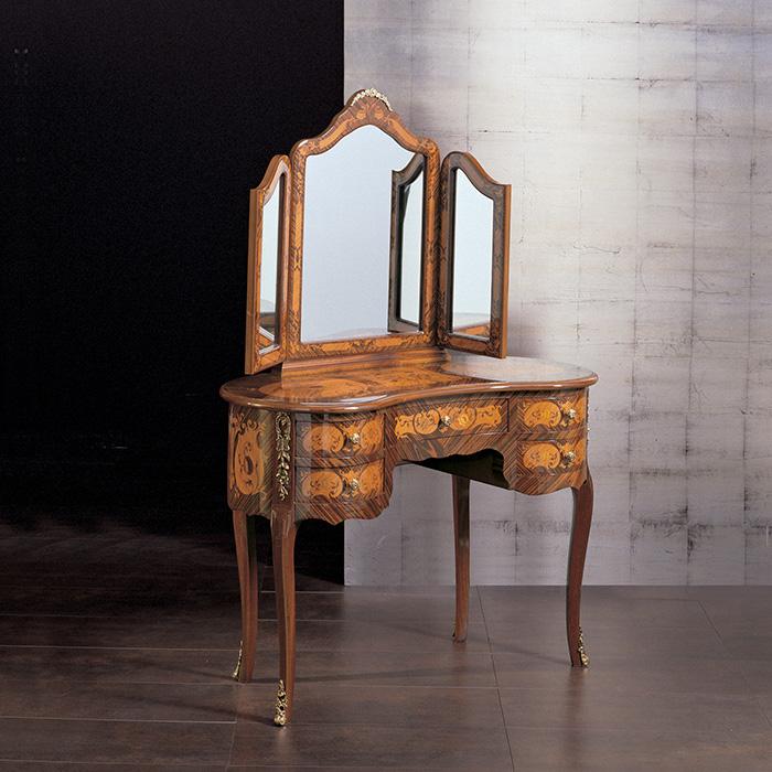 Le toilette “LUIGI XV” (1722-1774), veneer in rosewood and bois de rose with polychrome wood marquetry.