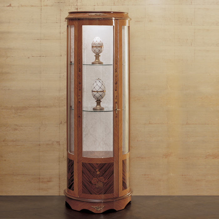 Glass cabinet show-case “LUIGI FILIPPO” (1830-1848), veneer in bois de rose and rosewood with polychrome wood marquetry.