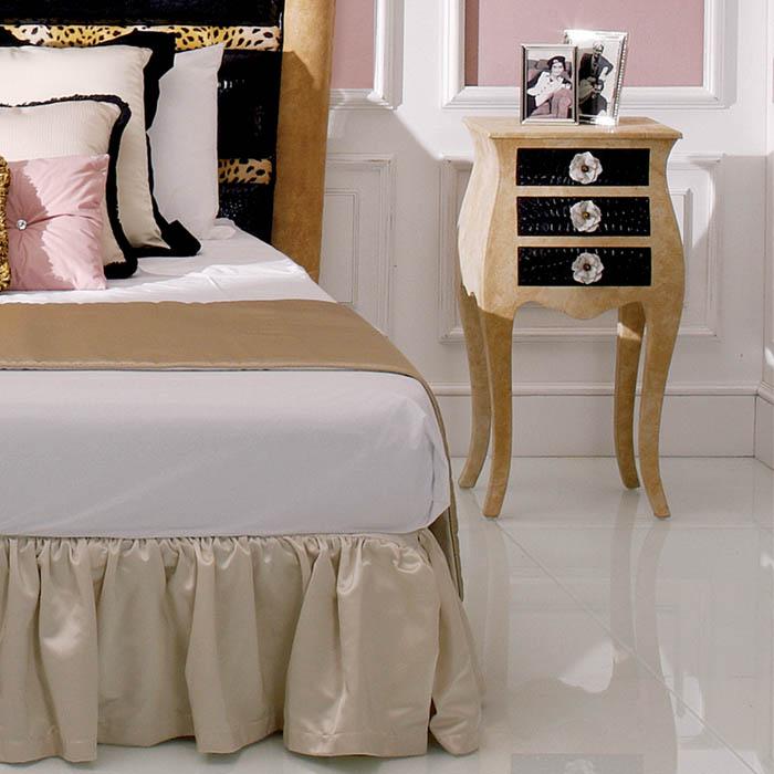 Bedside table completely covered with printed tejus and coco leather.