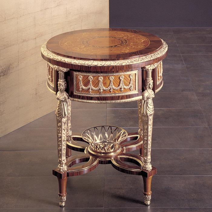 Lamp table “ IMPERO” (1804-1815), veneer in rosewood and bois de rose with polychrome wood marquetry. Gold bronzes.