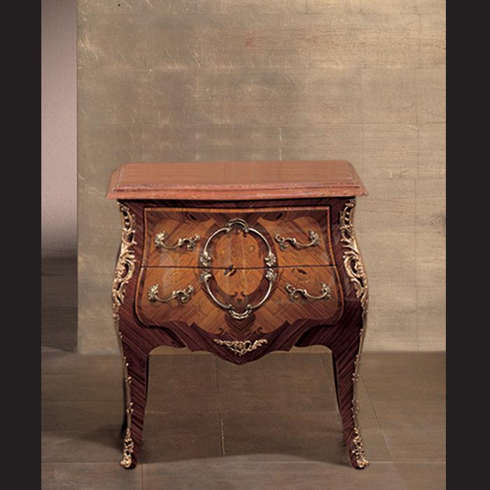 Bedside table“LUIGI XV” (1722-1774), veneer in bois de rose and rosewood. Marble top.