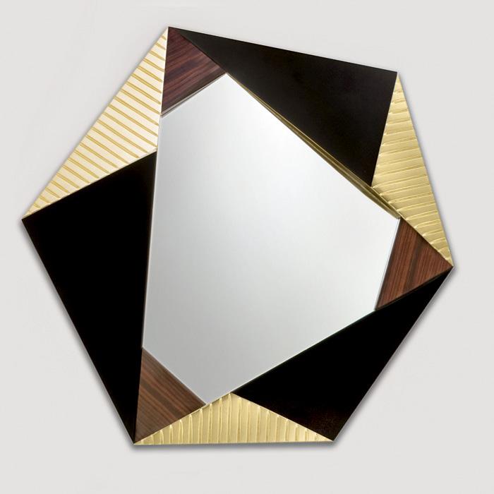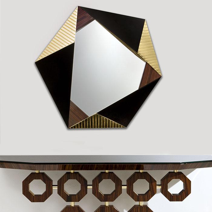 Hexagonal Mirror, Rosewood black lacquered and gold leaf.