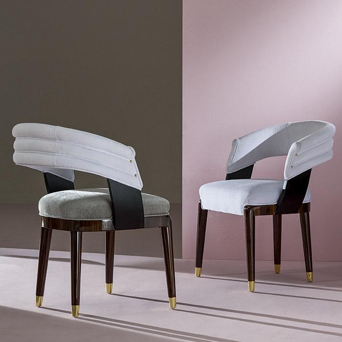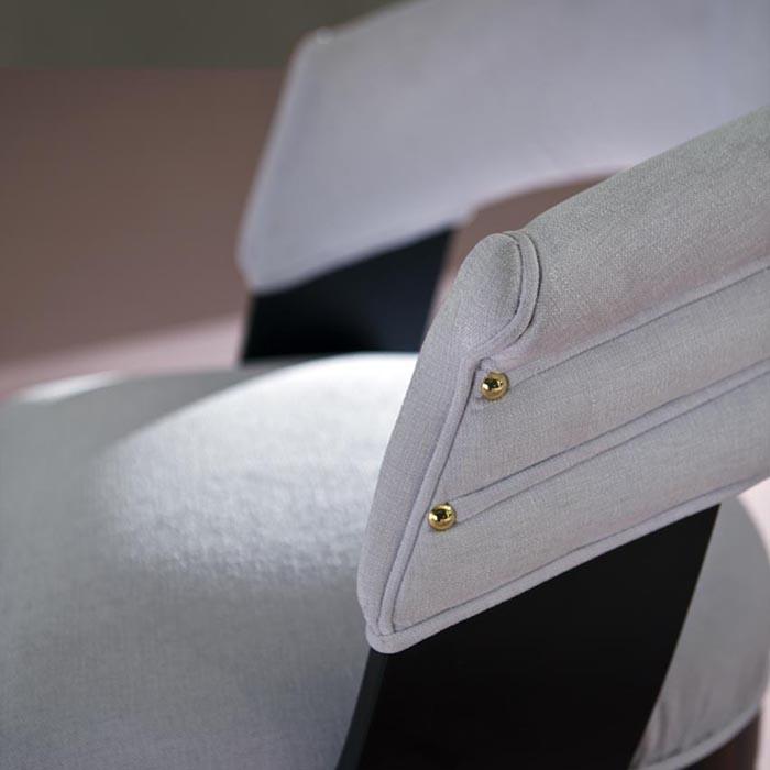 Armchair with upholstered seat and back, rosewood and black lacquered structure. Brass tips.