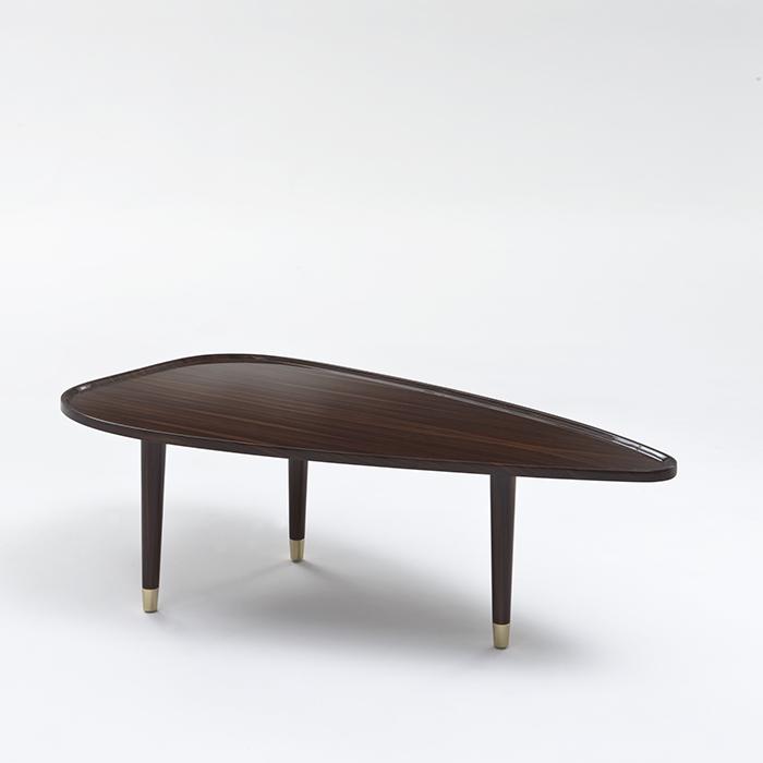 Rosewood coffee table. Brass tips.