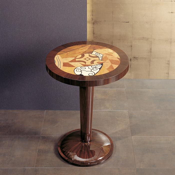 Small lamp table “ART DÉCO” (1915-1930), veneering rosewood with polychrome wood marquetry.
