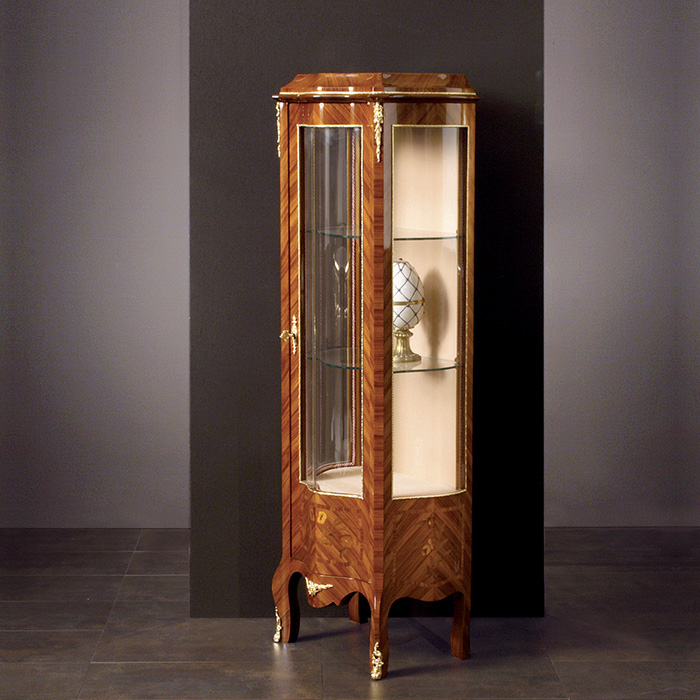 Glass cabinet showcase “LUIGI FILIPPO” (1830-1848), showcase veneer in bois de rose with polychrome wood marquetry.