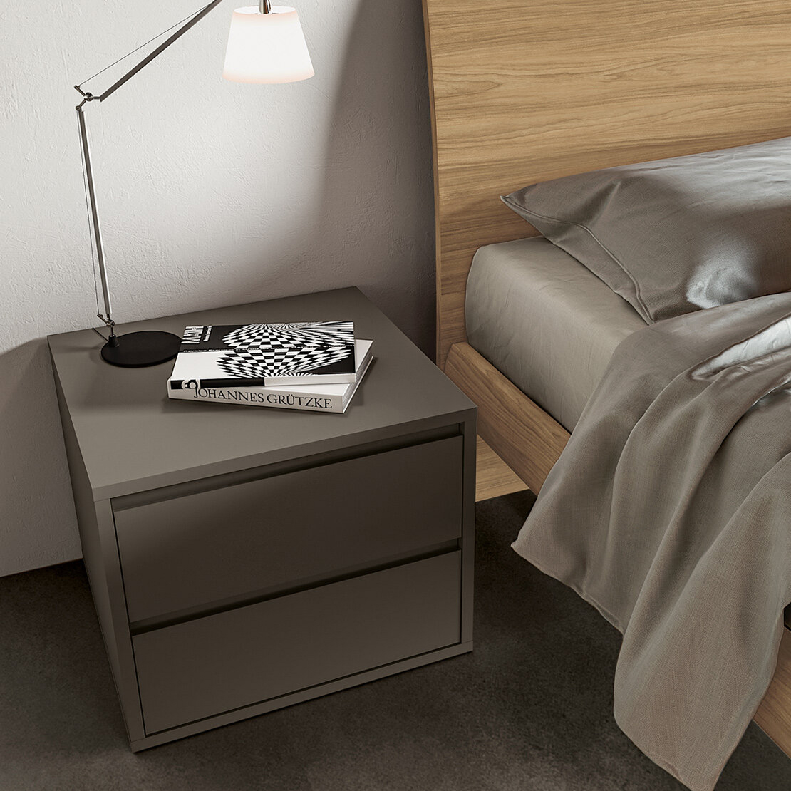 The bedroom style is function-oriented without compromising on appearance, because the look matters too. Simple lines and a variety of available colours make this bedside table suitable for any space.
