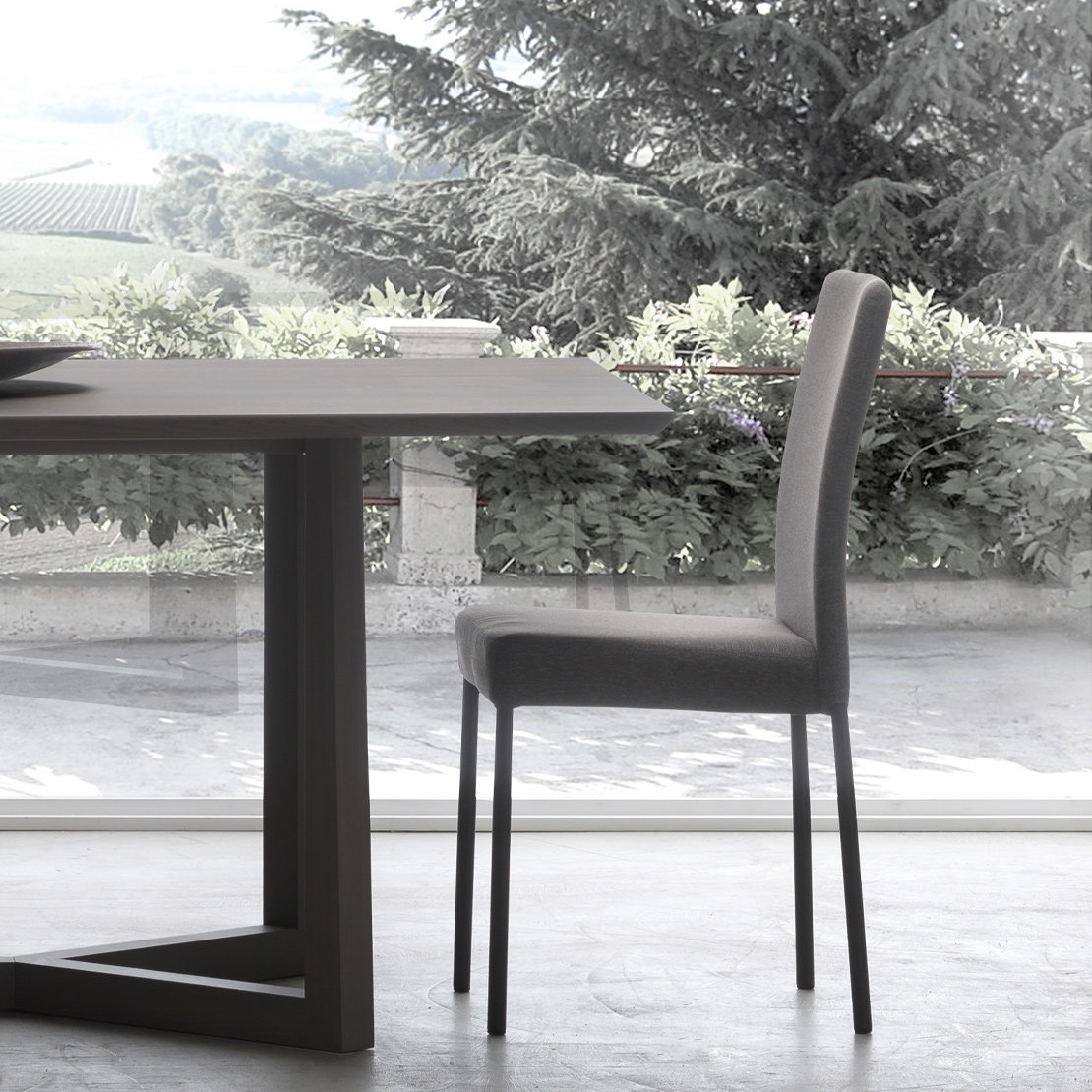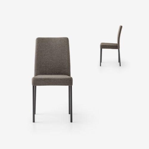 This simply shaped chair has elegant lines and is available in different types of fabric, with a Titanio-finish frame.