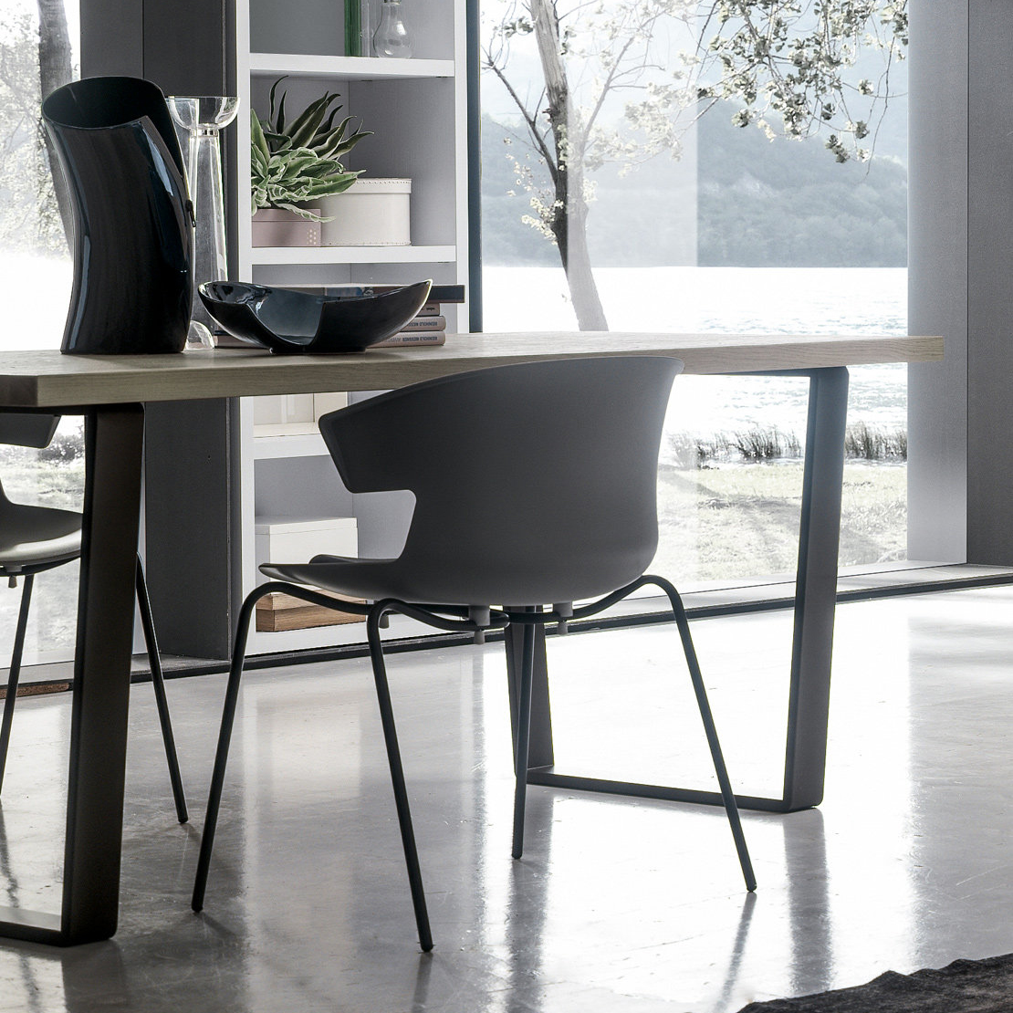 The mix of finishes makes it possible to furnish your space in different styles. For example, the wooden top and titanium frame can be combined to recreate an industrial feel.
