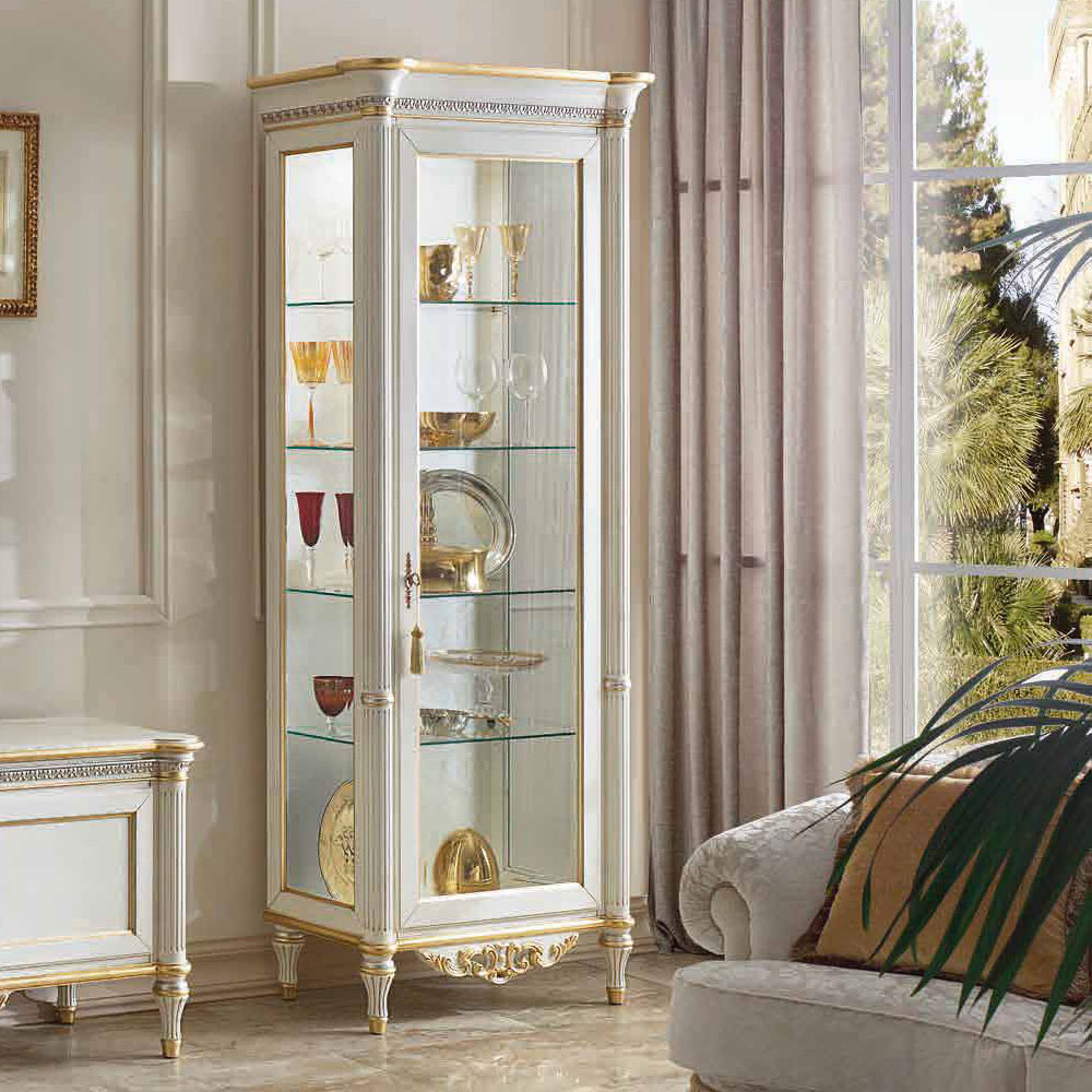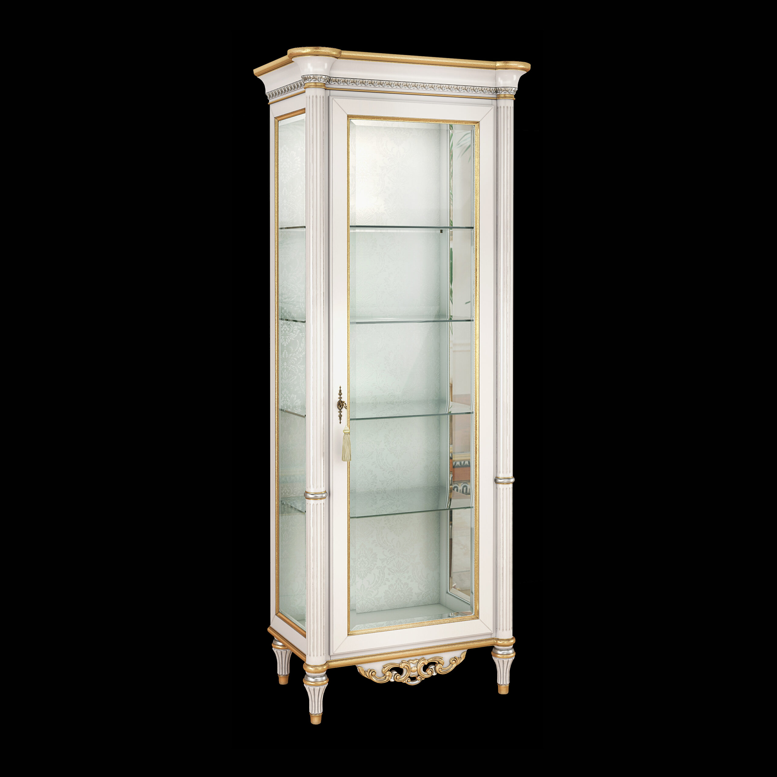 Display Cabinet without crown, left hand door opening, mirror back. Cabinet with right hand opening 2708NC-DX.
