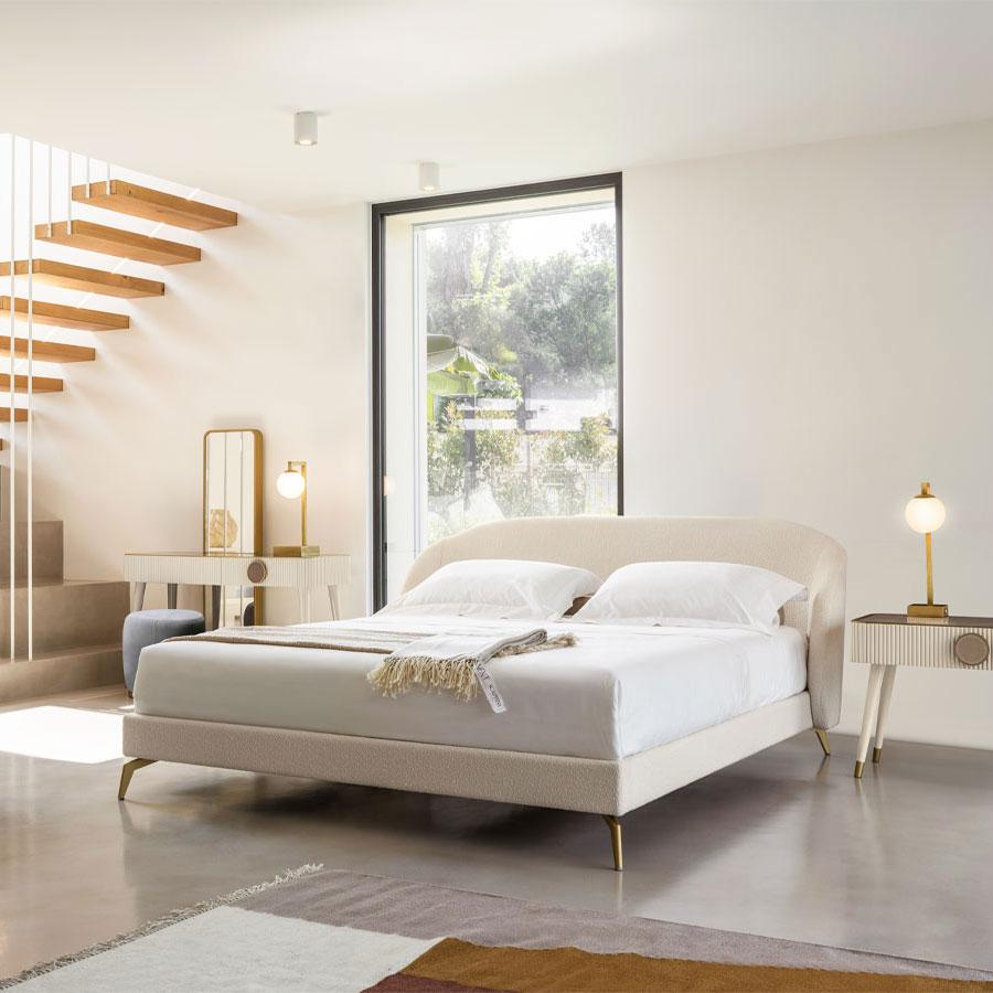 Protagonist of the next white capsule collection here is Wave, an iconic bed declined in white, a brand new alcove with an enveloping headboard, a cozy wide and light volume, with the base resting on slender brass feet.
