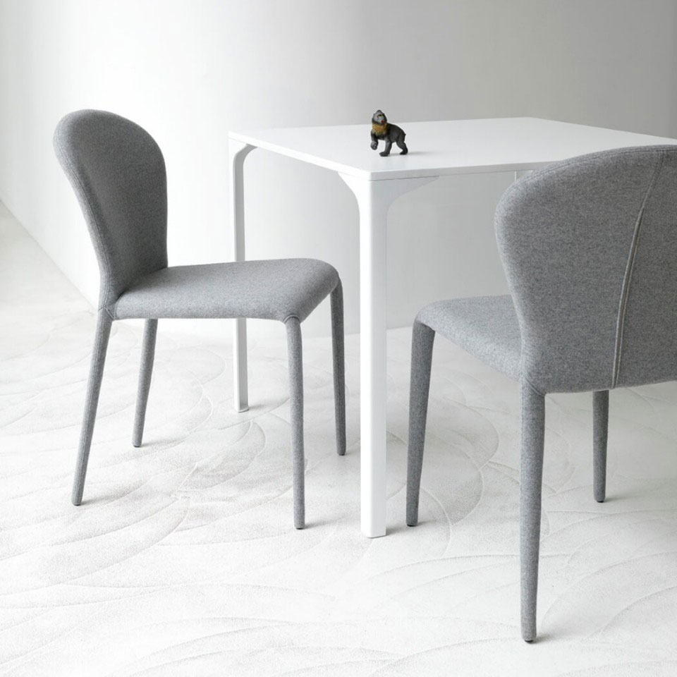 Chair with four-legs base completely upholstered in leather, faux leather or fabric.