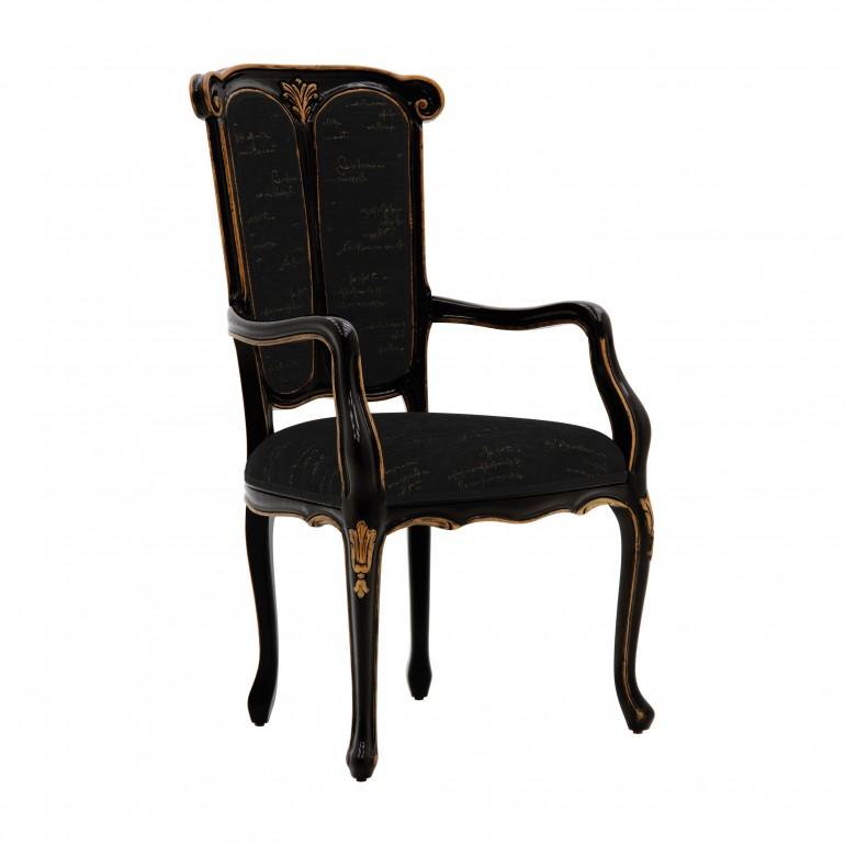 Classic style small armchair with a particularly elaborate beech wood structure. It features carvings on the back and front legs that can be enhanced with silver or gold leaf lacquer finish. The seat is padded with webbing, three springs and superior quality foam. The upholstery can be customized with nails, braiding, double welt or welt.
