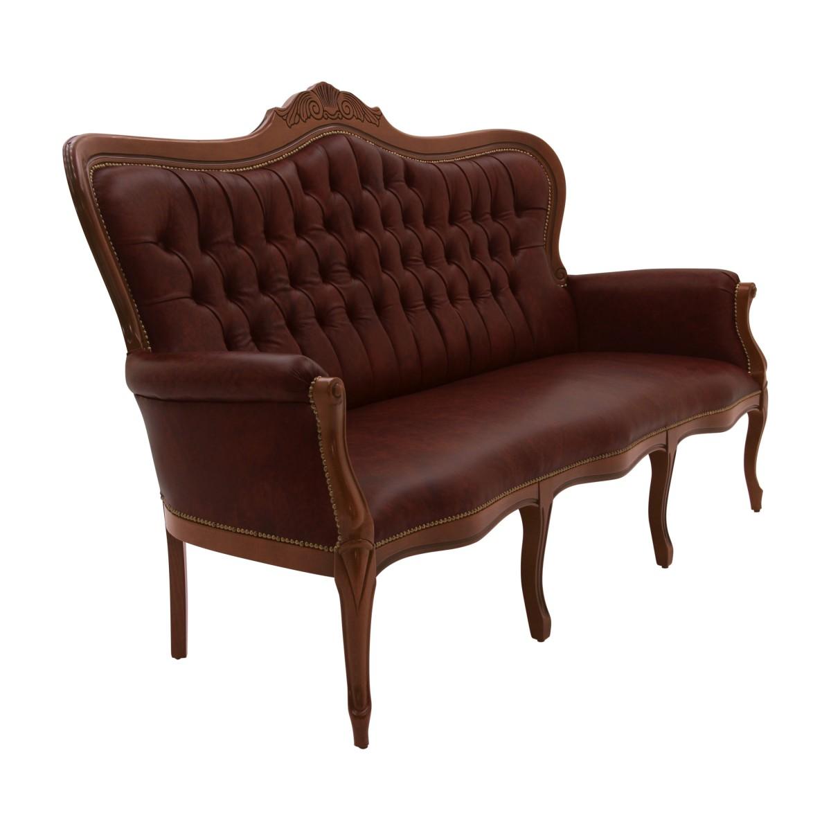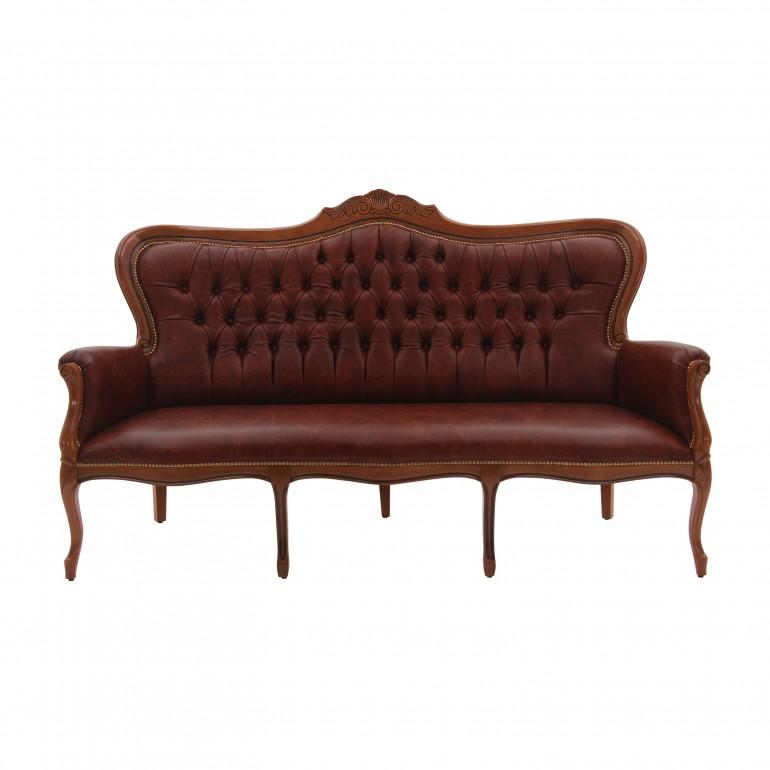 Comfortable Louis Philippe style three seat sofa with beech wood structure. It is upholstered with webbing and superior quality foam; the deep-buttoned back is a tasteful optional detail that adds an extra touch of elegance. The upholstery can be customized with nails, braiding, double welt or welt.