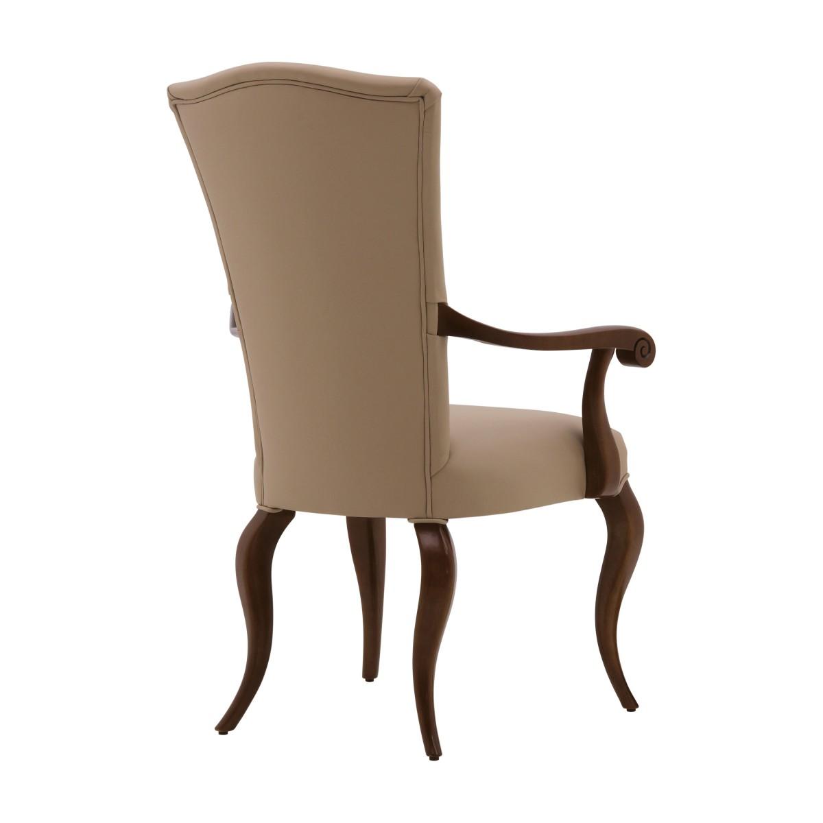Comfortable Classic style small armchair with beech wood structure and simple lines. The seat is padded with webbing, four springs and superior quality foam. The upholstery is trimmed with matching or contrasting piping. The three buttons stitched vertically on the back are a standard feature and lend an extra touch of elegance.