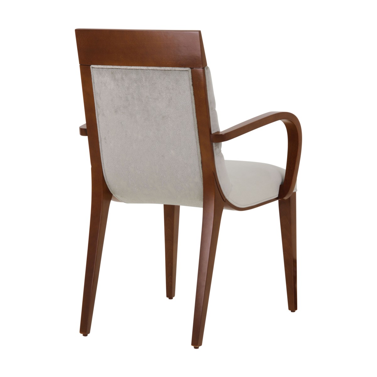 Elegant chair with essential and contemporary lines made of beech wood. The seat is padded with superior quality foam. The upholstery is trimmed with matching or contrasting piping.