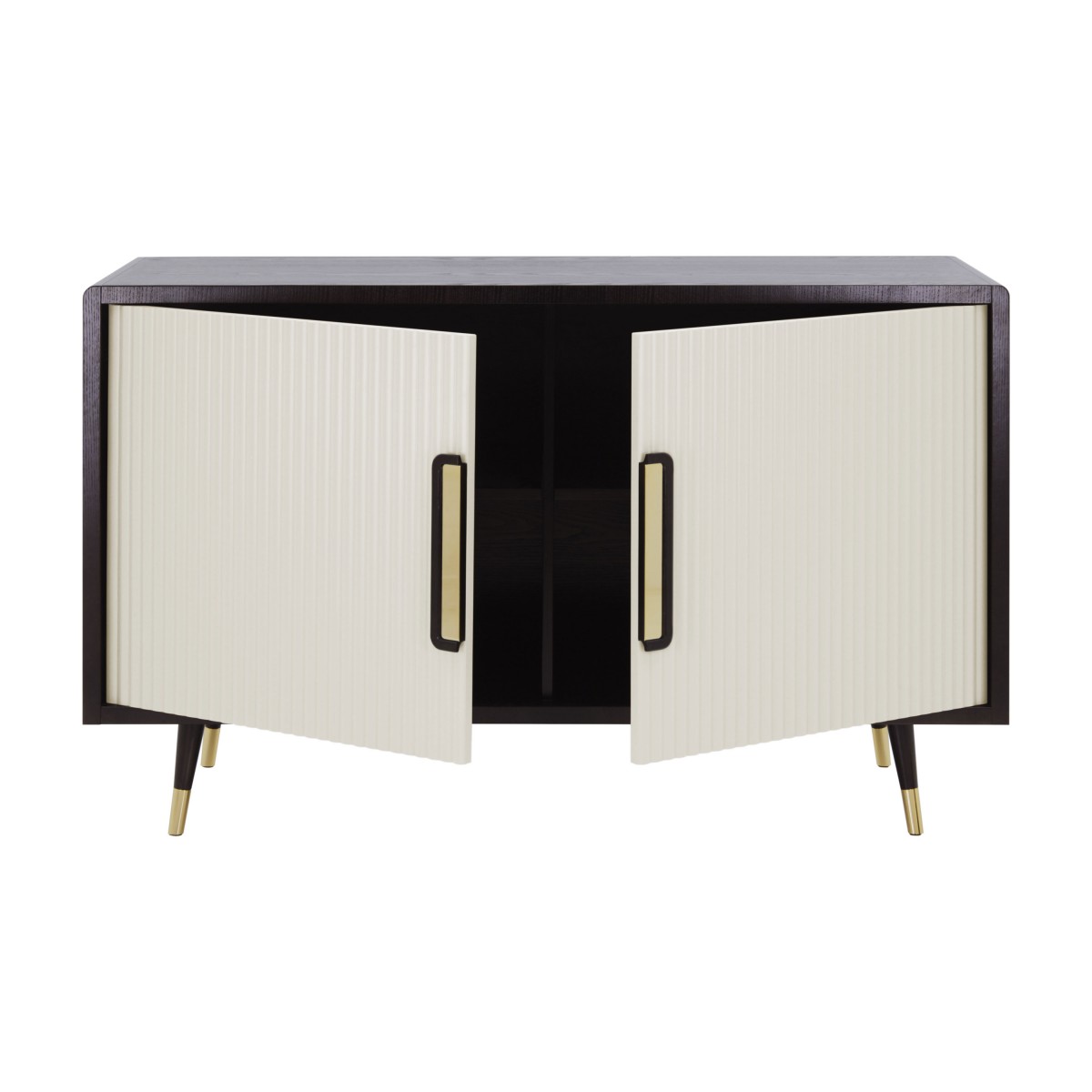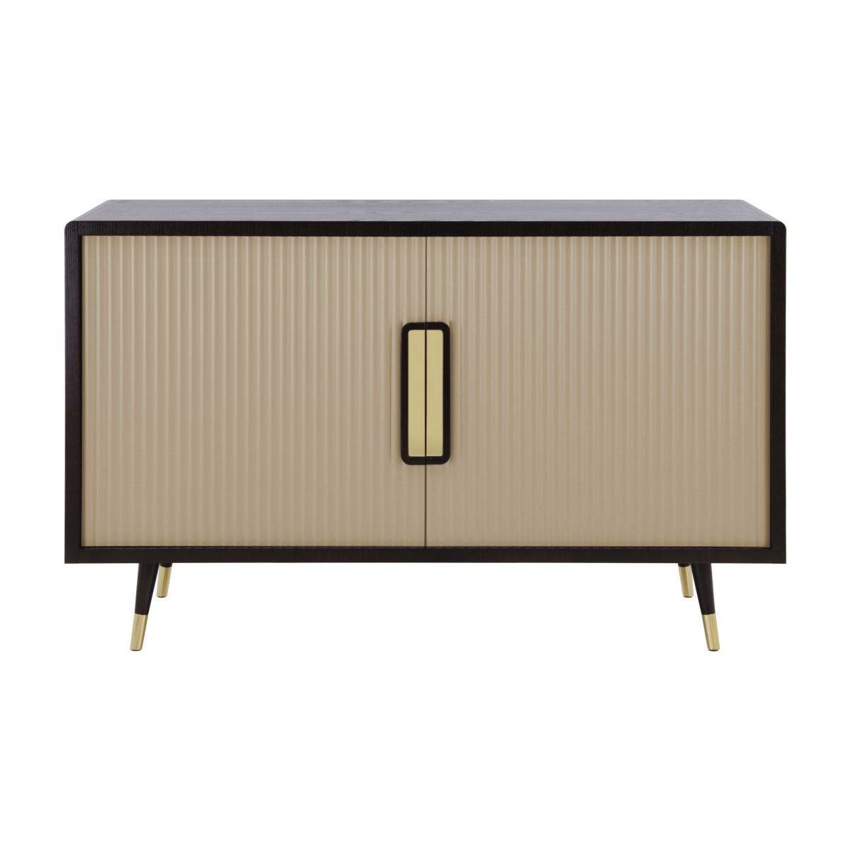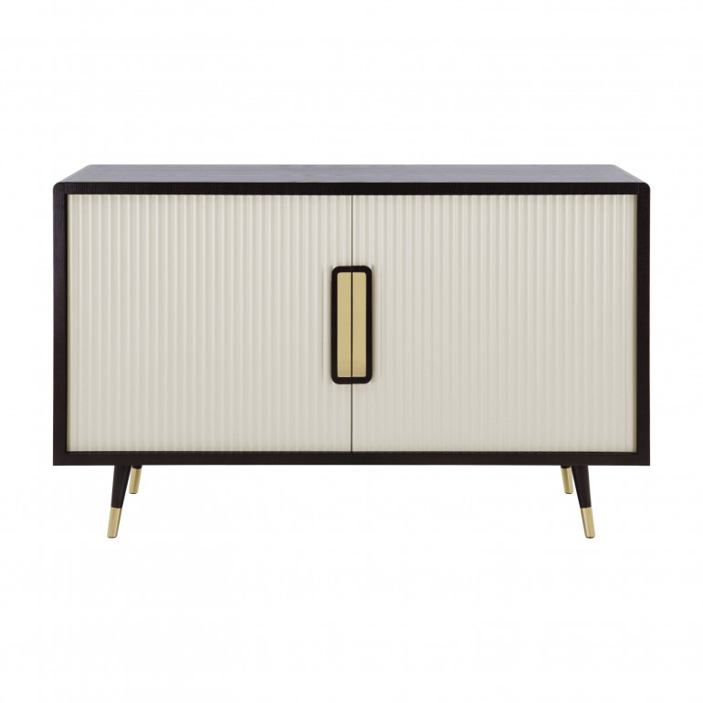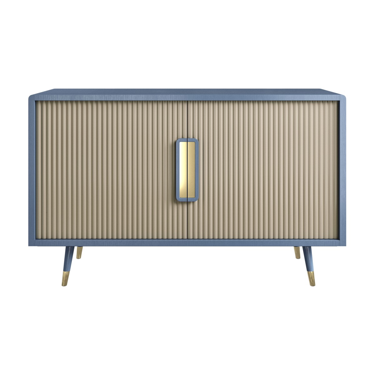 The Moon modern Italian sideboard with fluted doors is elegant and perfectly proportioned. Precious details such as the metal tip legs and the exclusive wood handle with gold plated metal insert, adds character to the neat and slender lines of this designer display cabinet. The Moon sideboard is highly customizable in several different finishes. These modern cabinets are the most representative pieces of Elly collection, lightened by the slender legs which lift them from the ground they are a perfect expression of modern Italian design.