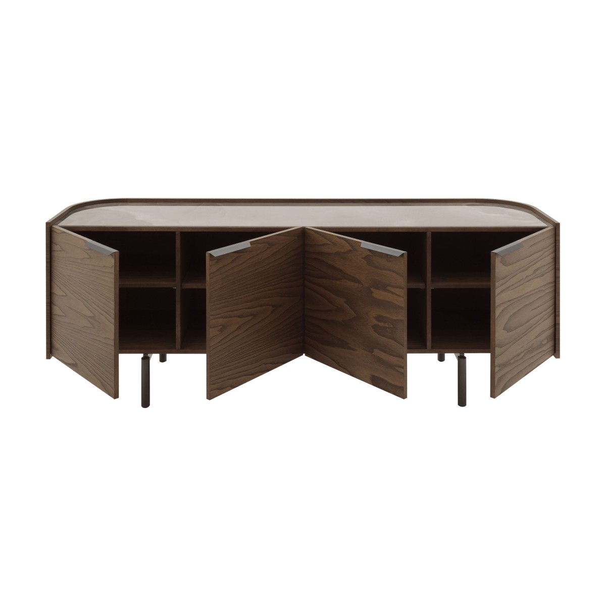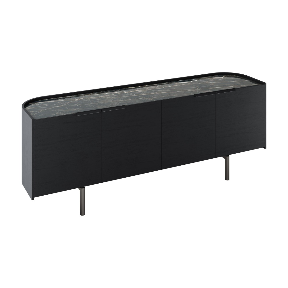 Modern sideboard with a highly unique design, featuring an ash wood structure and a ceramic top.