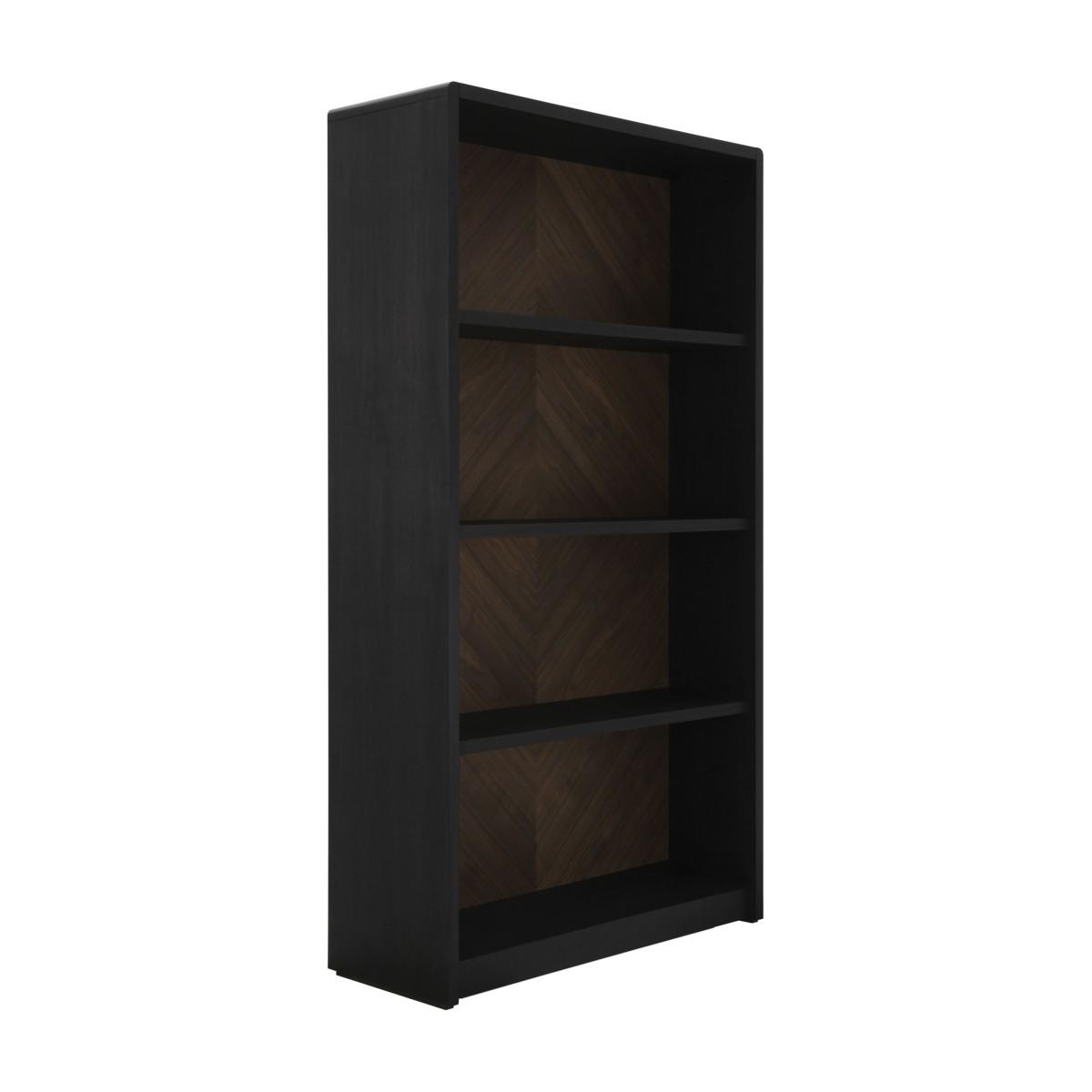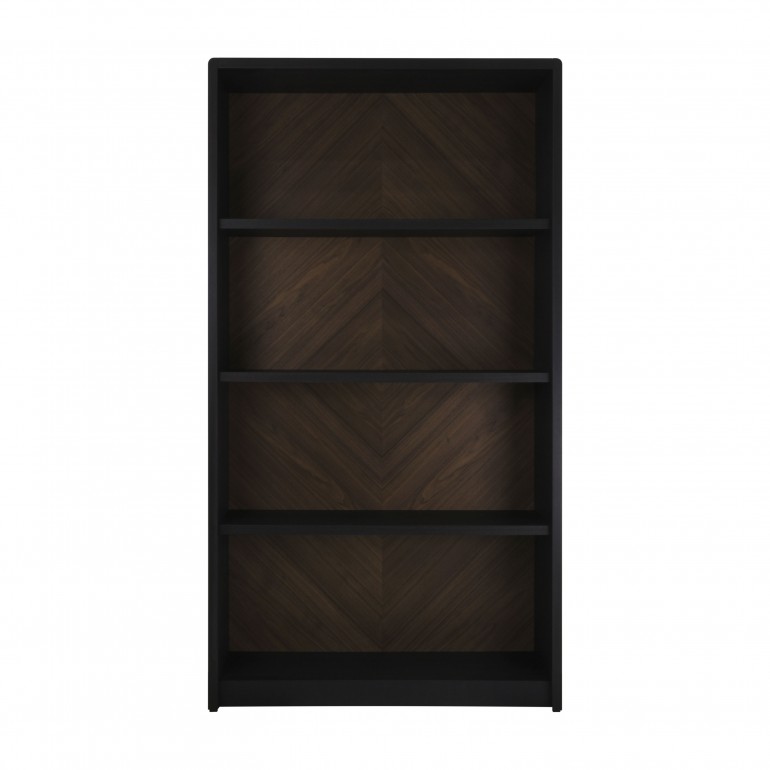 MOON is a modern Italian bookcase with wooden structure and open shelves. It is the perfect solution for an exclusive modern office or for a livingroom. Moon bookcase is veneered in natural Ash wood, polished in a beautiful anthracite finish which enhances the natural grains of the wood. The walnut back panel, with an exclusive rombus design, is polished in walnut color to enlight the beauty of the natural wood. Design and manufacturing are done entirely in Italy.