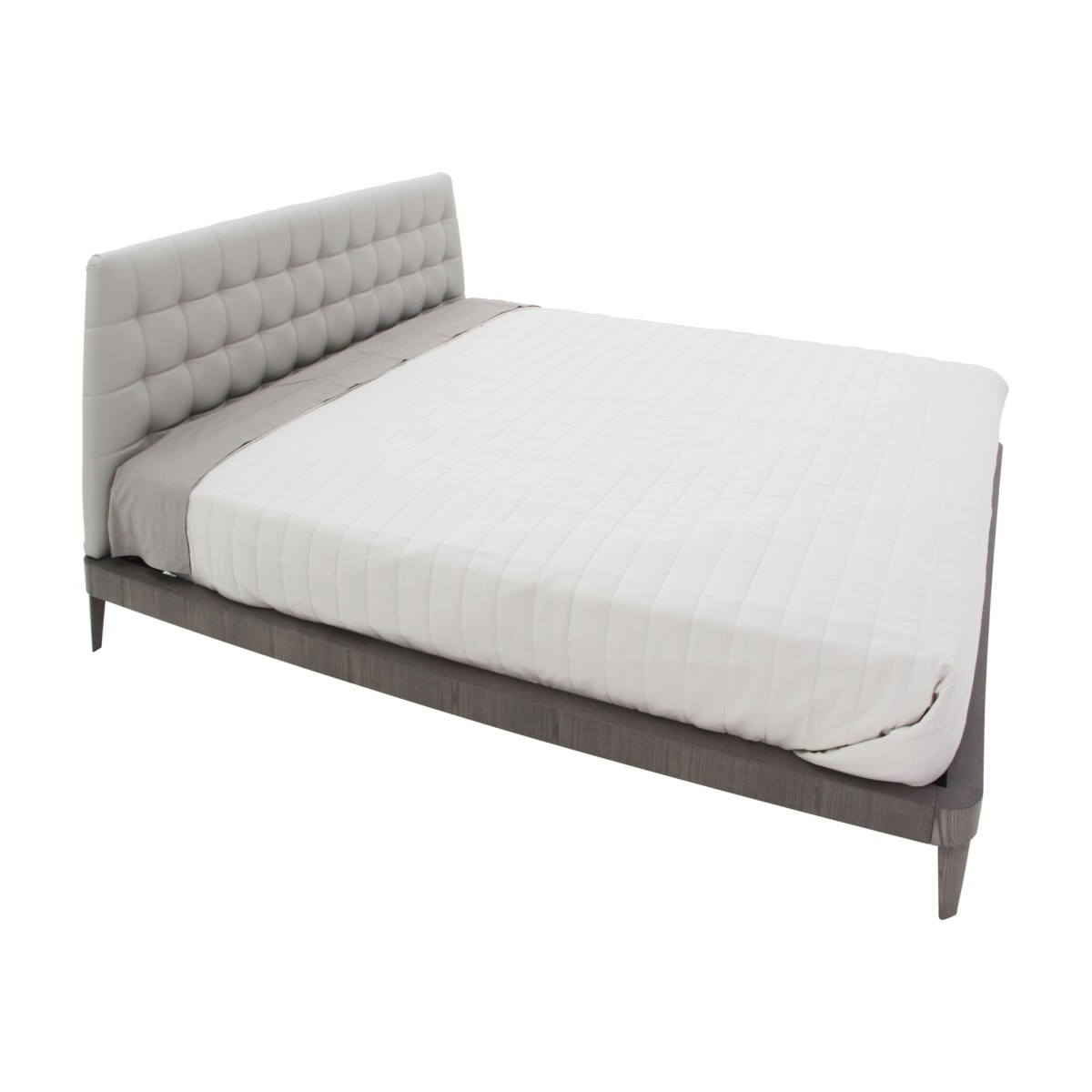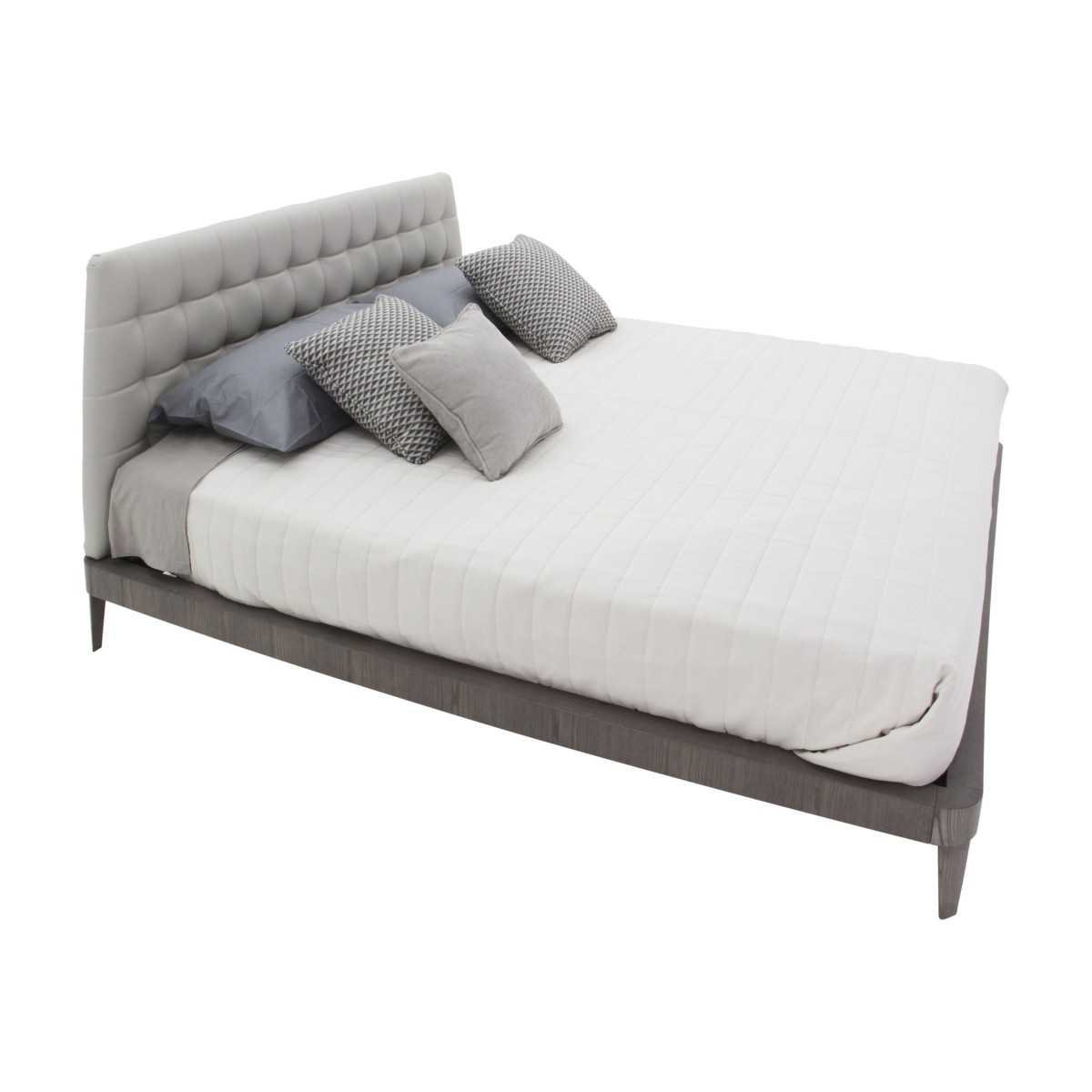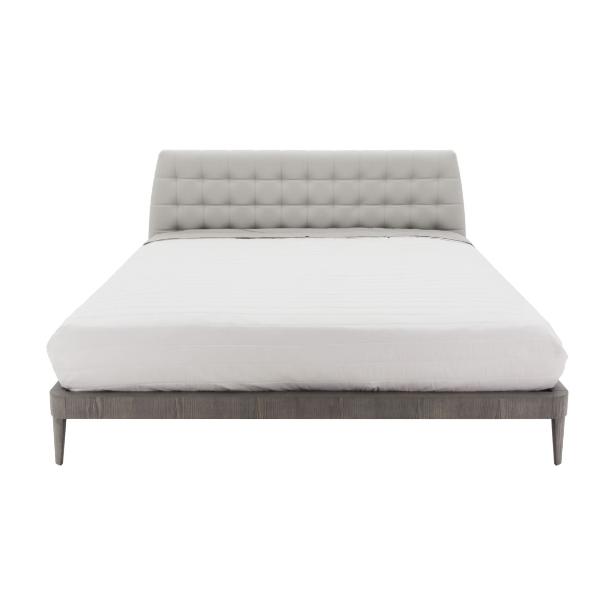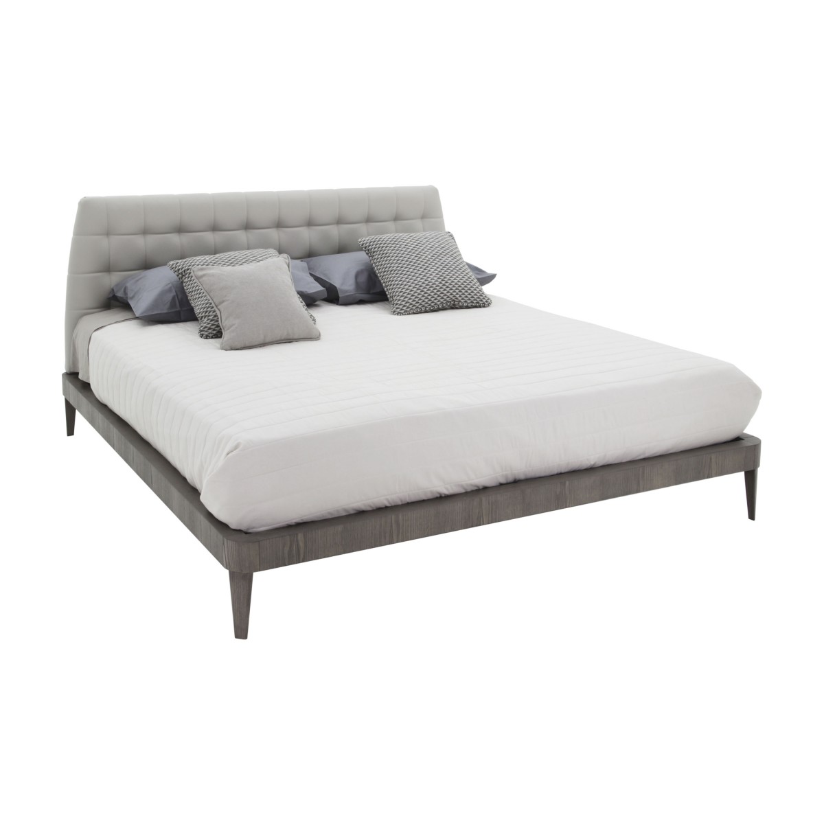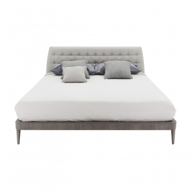 Ada double bed is featured in this beautiful modern furniture collection in its most essential form; the headboard is transformed into a shell covered with a mélange fabric that highlights the lightness of the shape. The sides of the bed are reduced to a thin wooden frame supported by four slender and streamlined legs. The double bed, with a decidedly modern cut, also avails a more classic look with a headboard that revisits the classic deep buttons padding in a modern key. The result is a bed designed in compliance with the principles of contemporary comfort but with those handcrafted details that make it a unique piece with a strong character, ideal for giving the bedroom a touch of absolute personality.