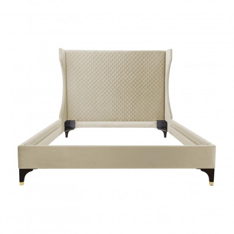 This elegant double bed is highly customizable to fit any size mattress. Upholstery can be in a dove color velvet as picture or in any other fabrics, leathers or faux leathers.