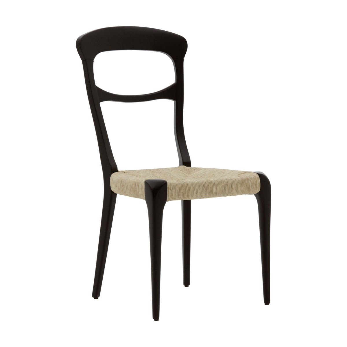 Comfortable Contemporary style beech wood chair with very simple and essential lines. It is made using the structure of one of our leading chairs it features a rush seat making it a unique product in the Sevensedie range. The type of finish, polished or lacquered, can be selected from all those available.
