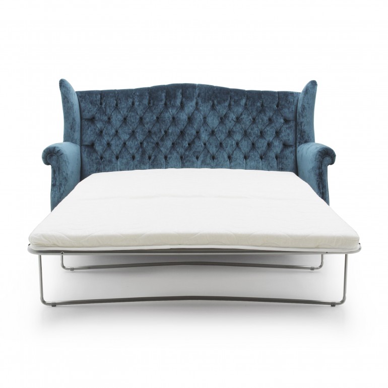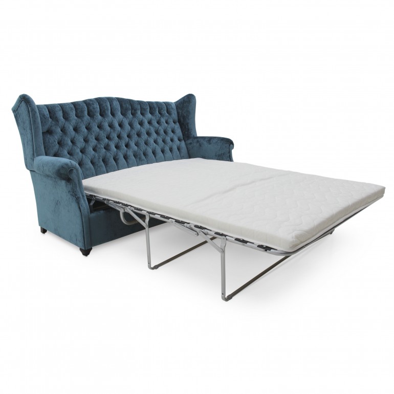 Old England sofa bed is a comfortable and elegant four seater sofa. With a functional revolving mechanism it can easily be turned in a comfortable bed. This classic sofa bed with its elegant lines is the perfect combination of functionality and elegance, with a solid wood structure and upholstered with quality foam, this sofa bed will give a touch of class to your interior. The wooden slatted bed base is contained inside the sofa structure and a mattress is also included. It can be easily operated just by one person and it can be turned from an elegant sofa to a comfortable bed in no time. Available in fabric and leather.