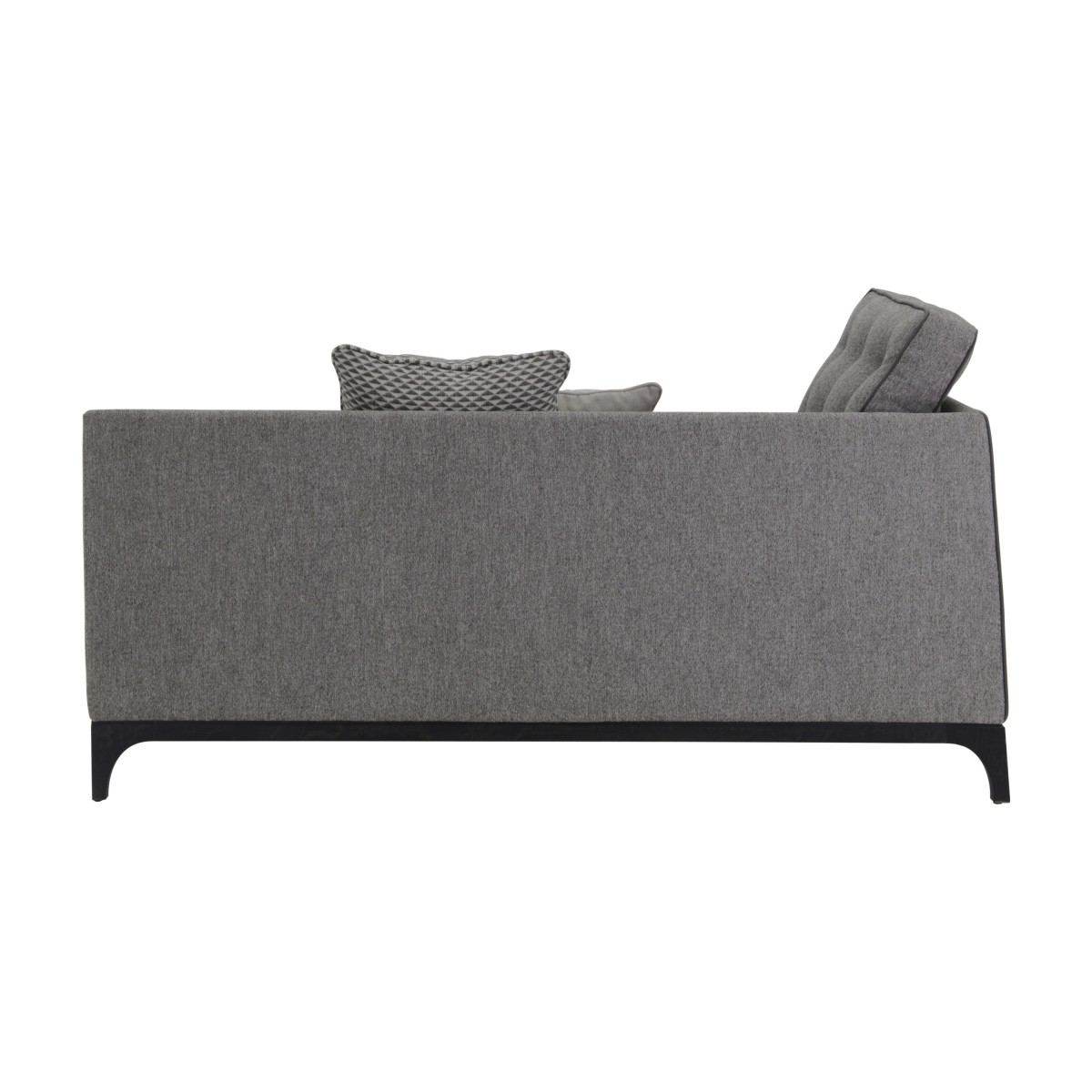 Mystirio sofa is the perfect fusion between an essential geometric shape, ideal for all styles of homes, and the refinement of details: from the buttoned backrest cushions, to the choice of precious upholstery materials, to the legs in anthracite finish raising the seat and conferring to the sofa a distinctive aesthetic lightness. Arm on the left side. Loose cushions MCUS039 and MCUS059 may be purchased additionally.