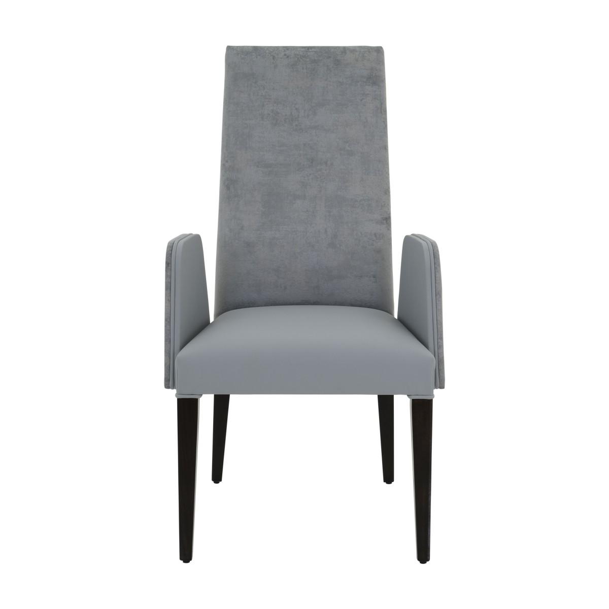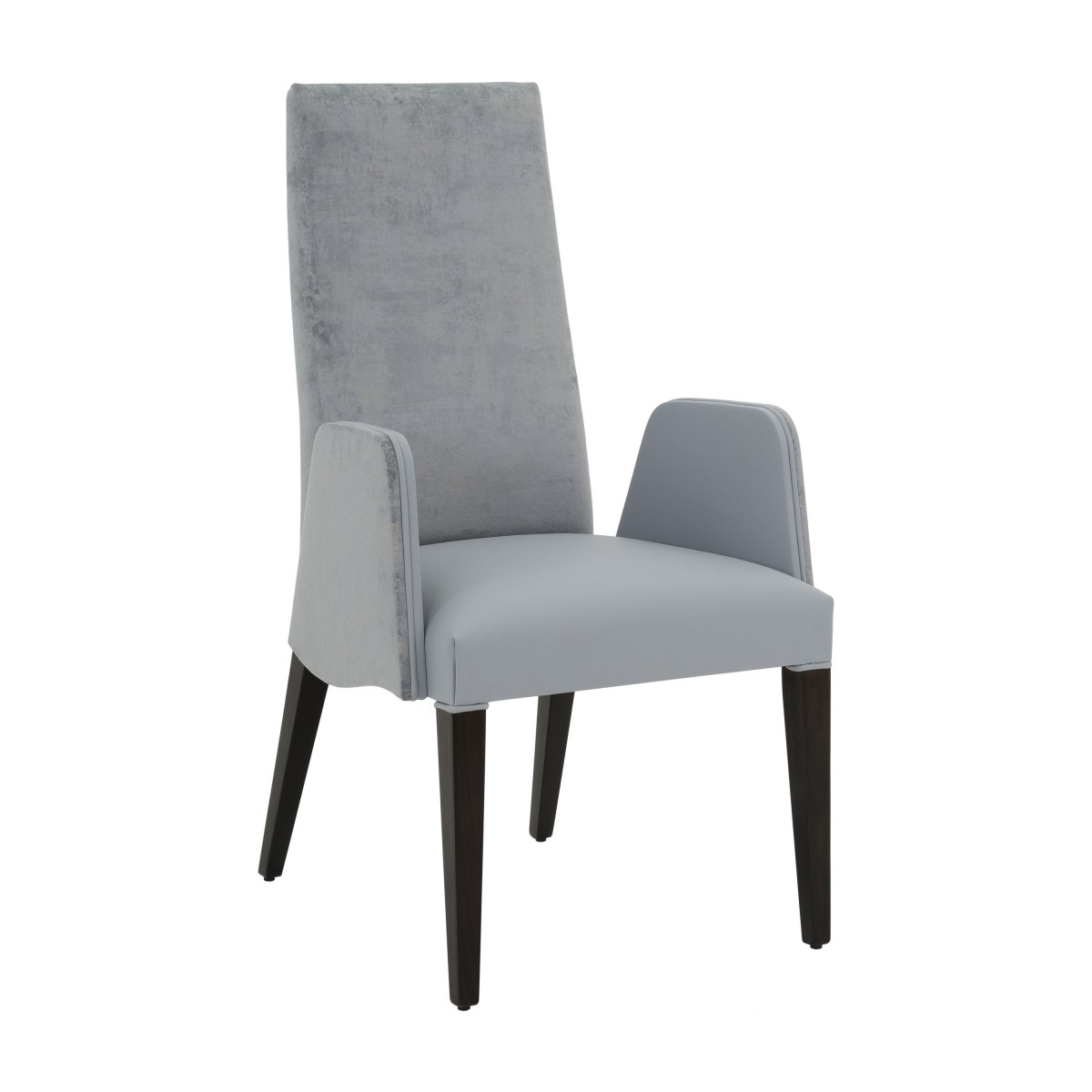 Comfortable modern-style armchair with a simple beech wood frame and an appealing armrest shape.