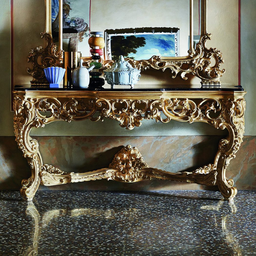 Console with marble top; 82.7″ w. x 26.75″ d. x 37.4″ h.