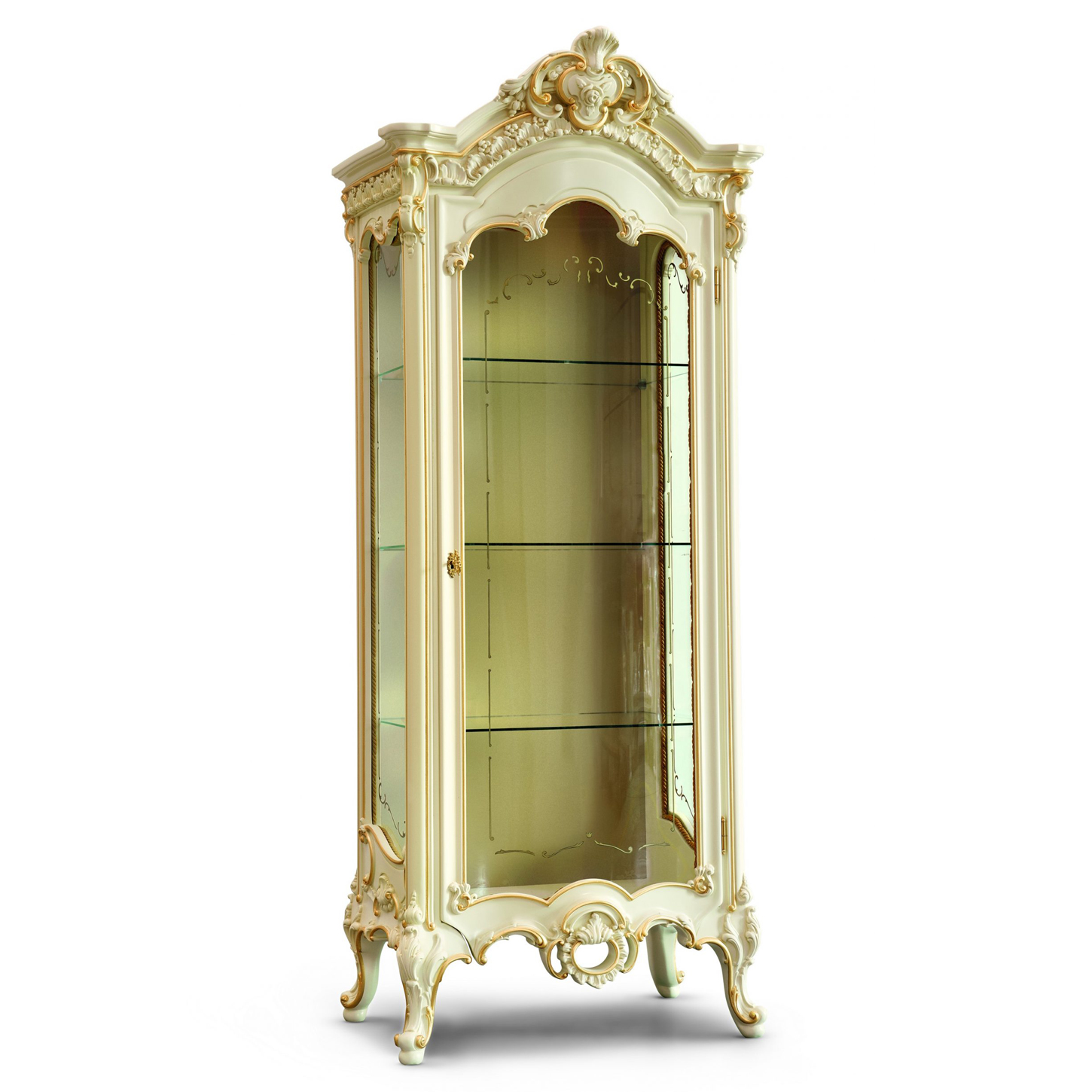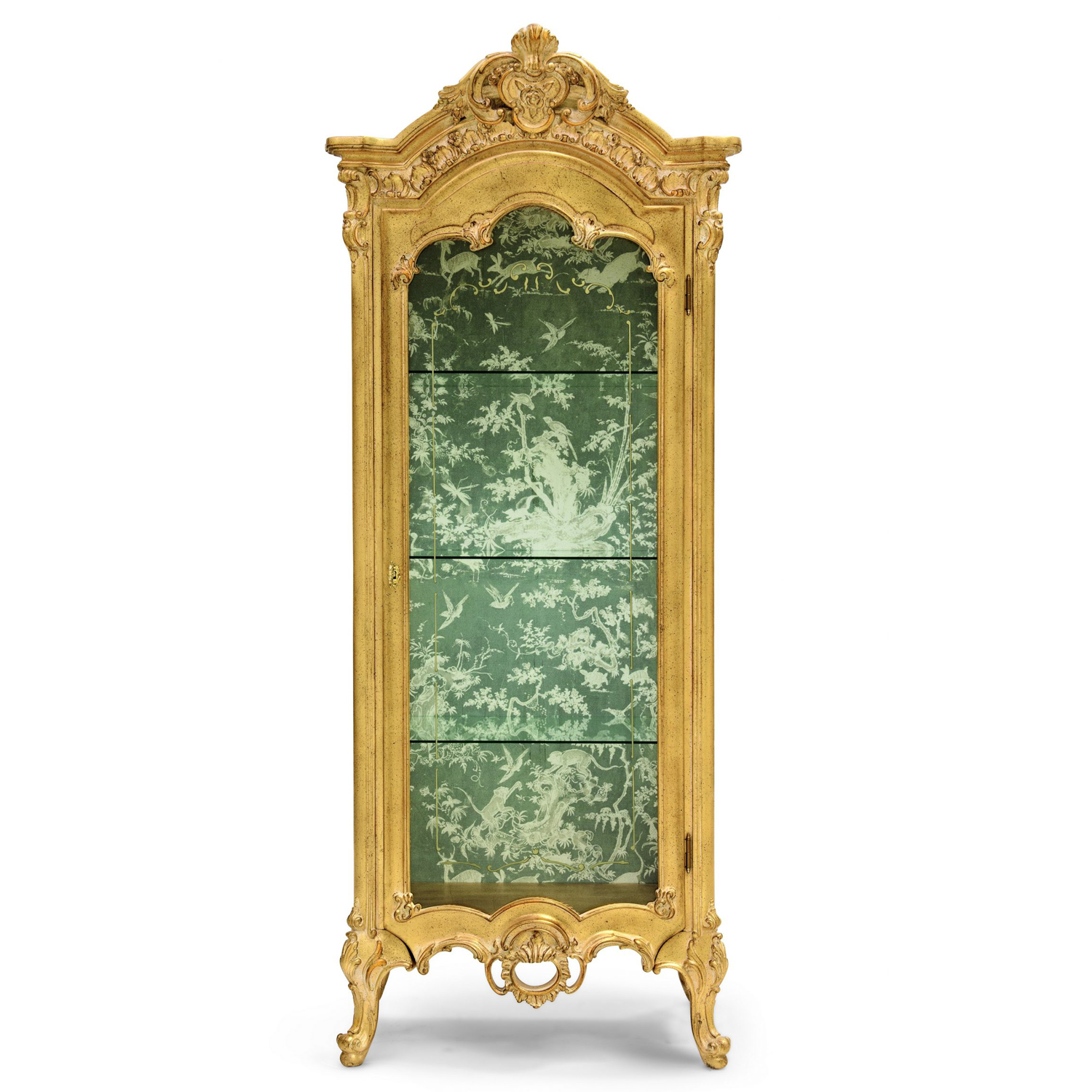 One door glass cabinet with engraved crystals; 30.7″ w. x 22.45″ d. x 75.2″ h.