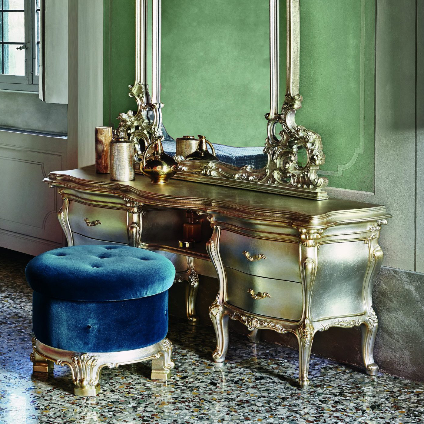 Dressing table with 4 drawers, wooden top with glass; 66.55″ w. x 17.7″ d. x 25.6″ h.