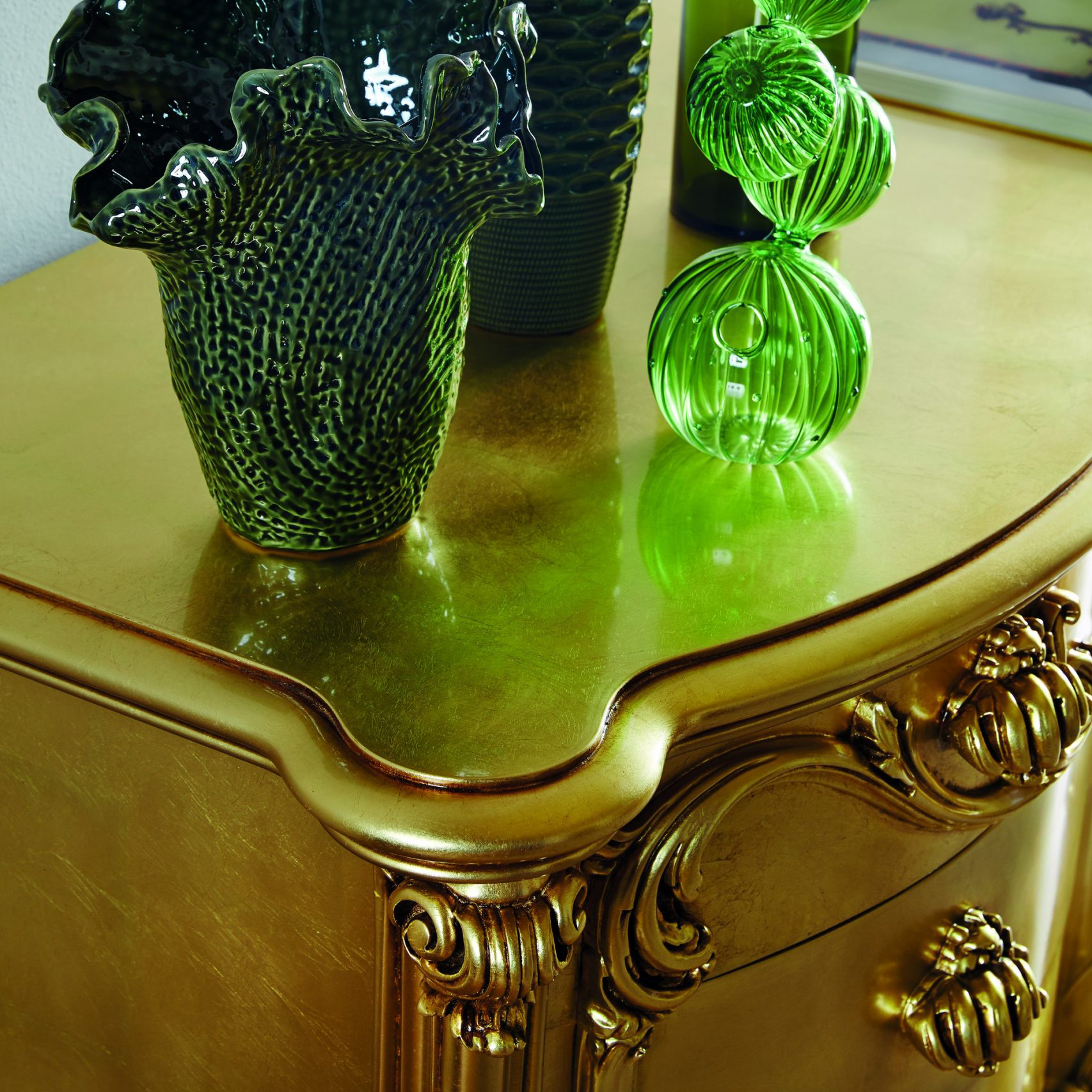 Dresser with 4 drawers, wooden top with glass; 61″ w. x 24.4″ d. x 38.2″ h.