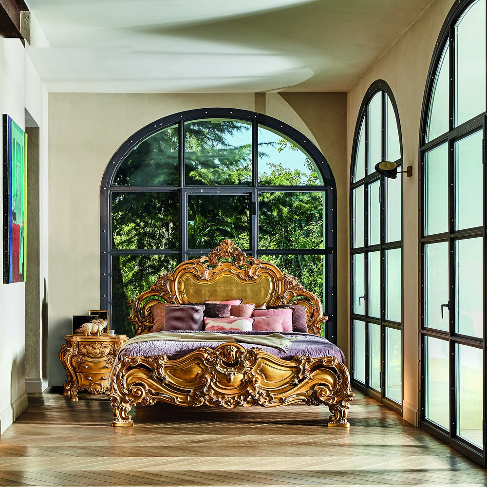 Double bed with wood panels; 78.75″ l. x 85.85″ d. x 62.6″ h.
