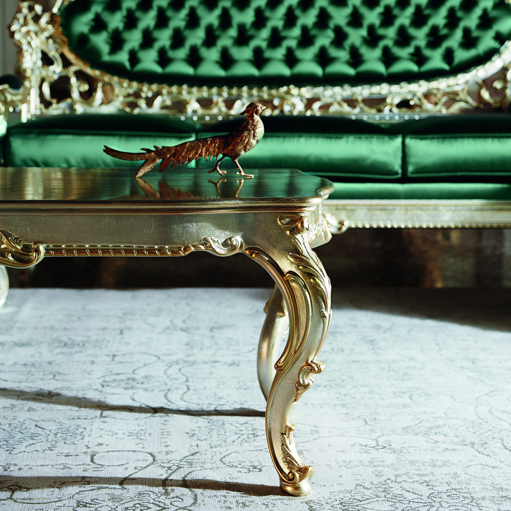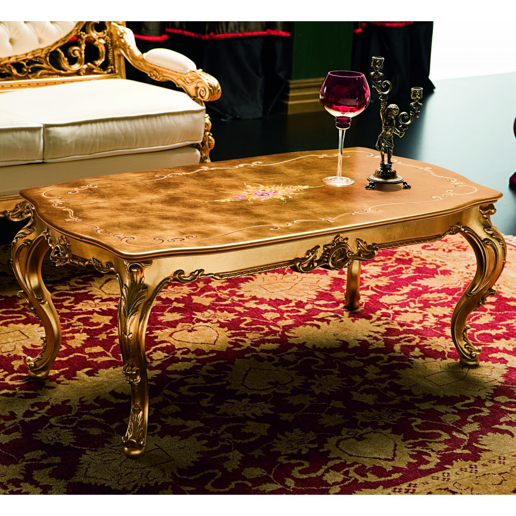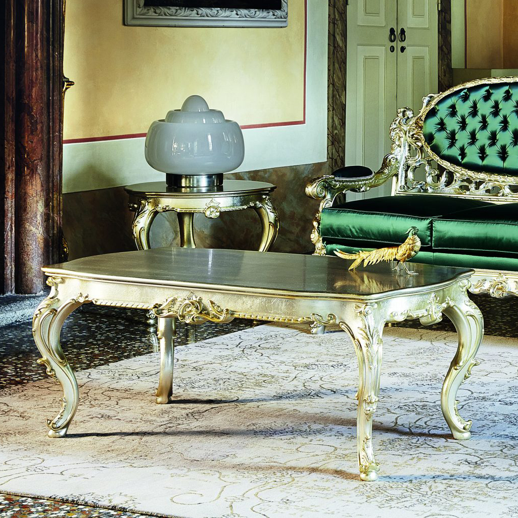 Dedalo rectangular coffee table, wooden top with crystal; 47.65″ w. x 26″ d. x 20.1″ h.