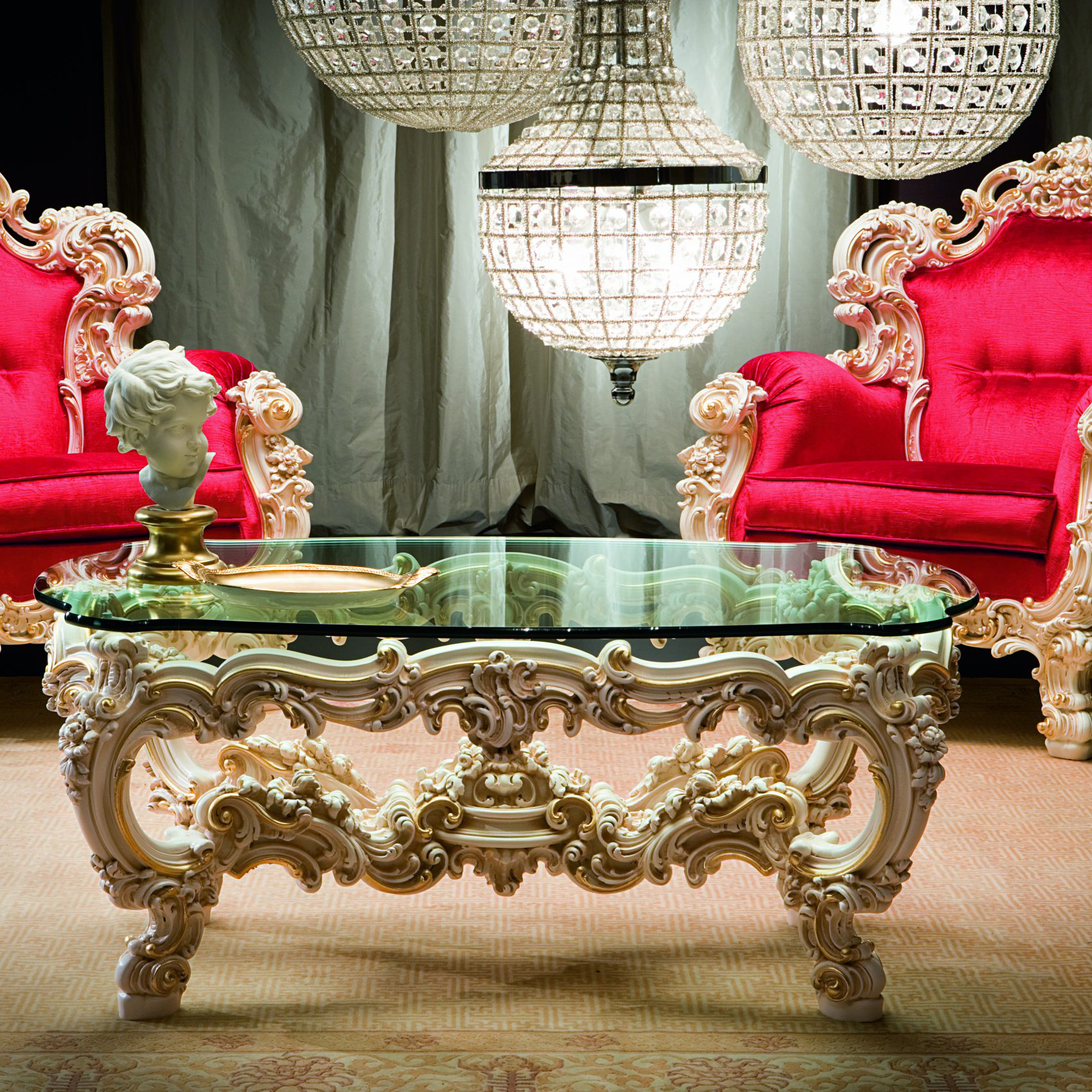 Orpheus rectangular coffee table, crystal top; 50″ x 29.15″ x 21.25″ h.