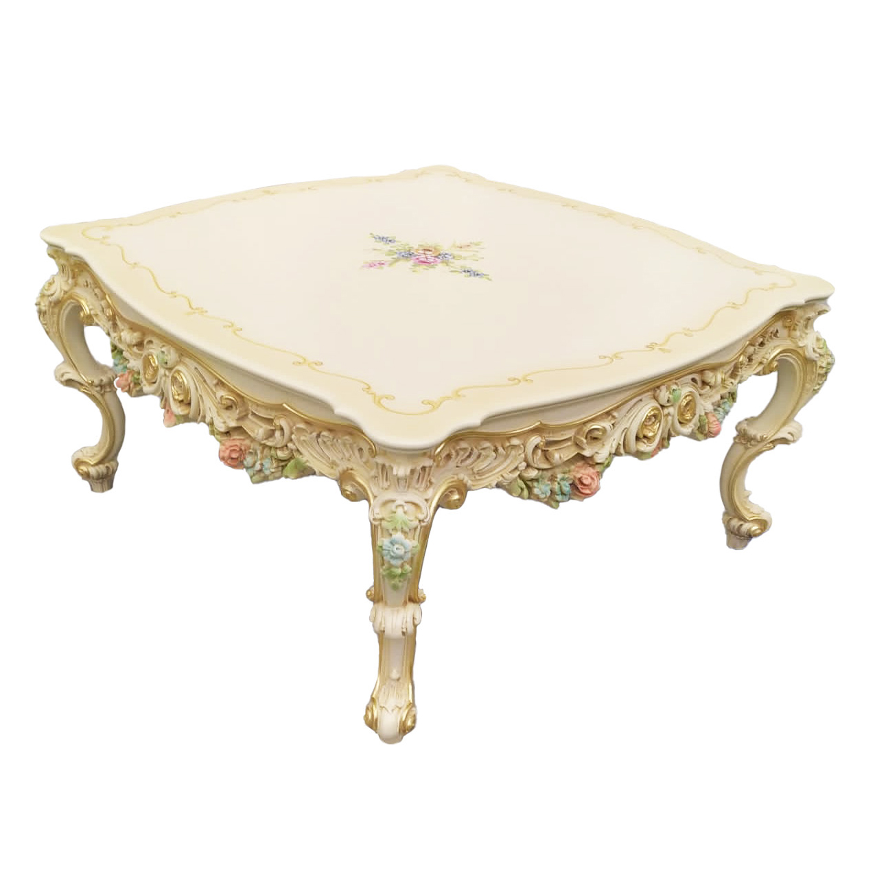 Plutone square coffee table, wooden top with crystal; 46.85″ w. x 46.85″ d. x 24″ h.