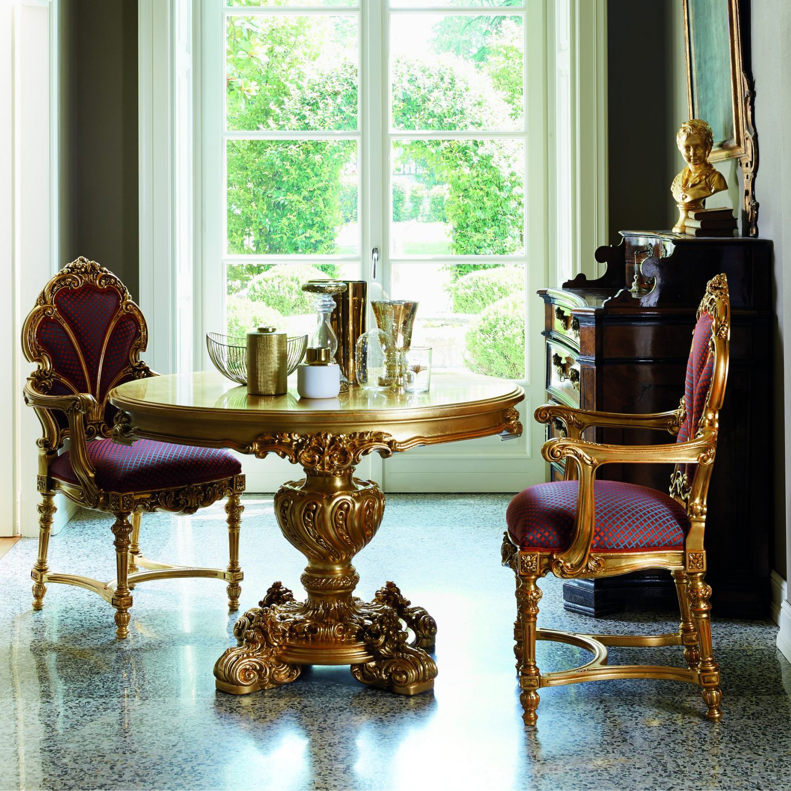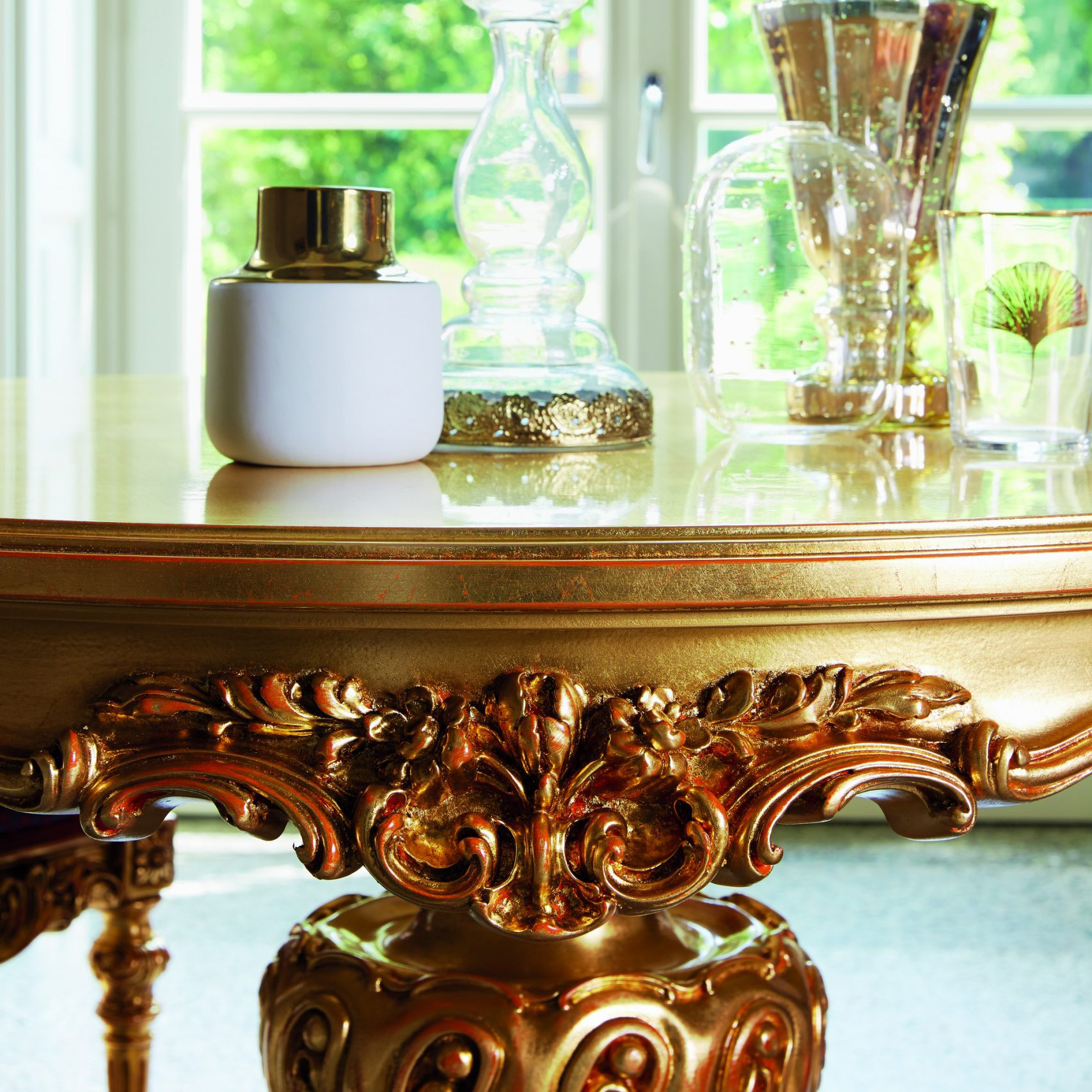 Round table, wooden top with glass; 47.25″ diameter x 31.5″ h.