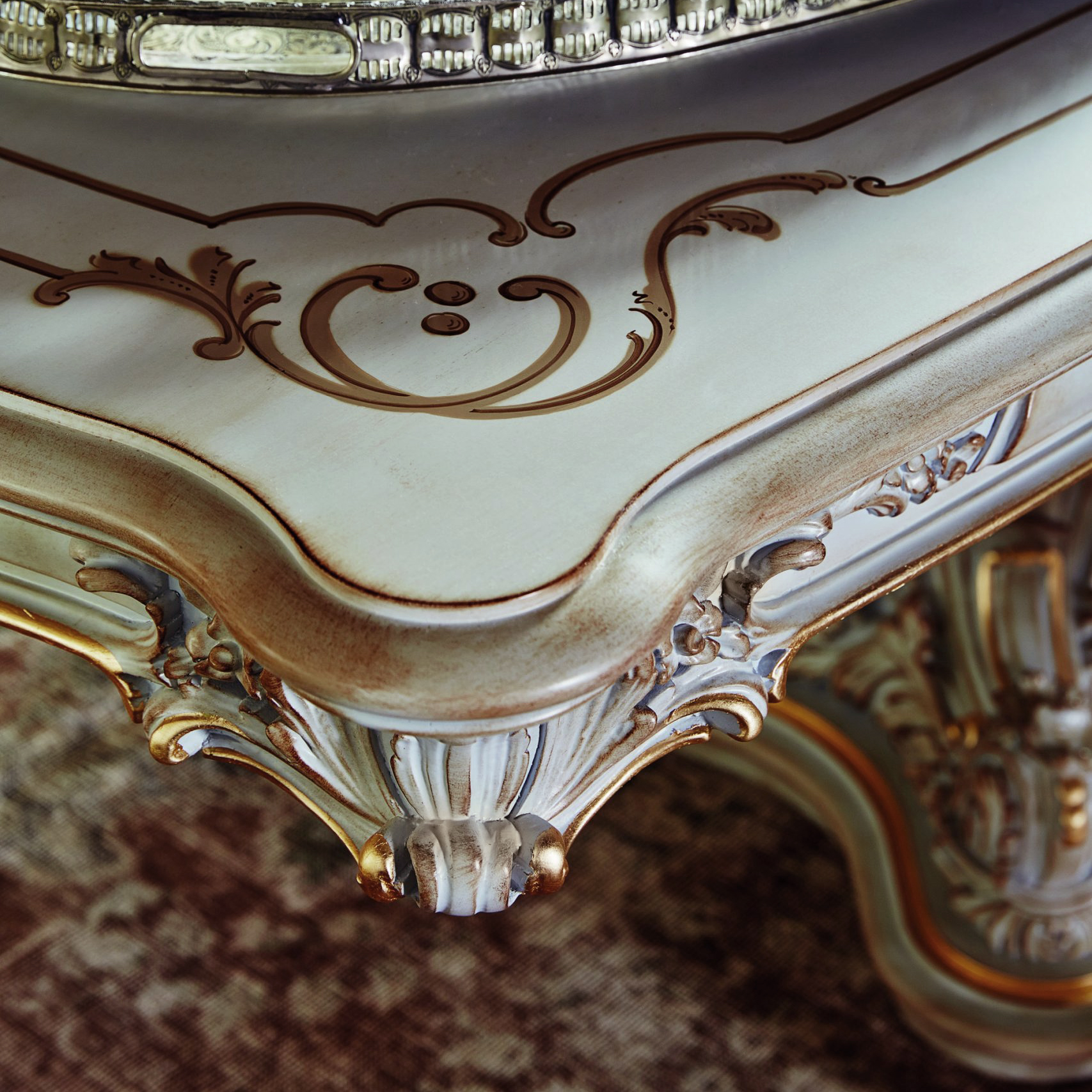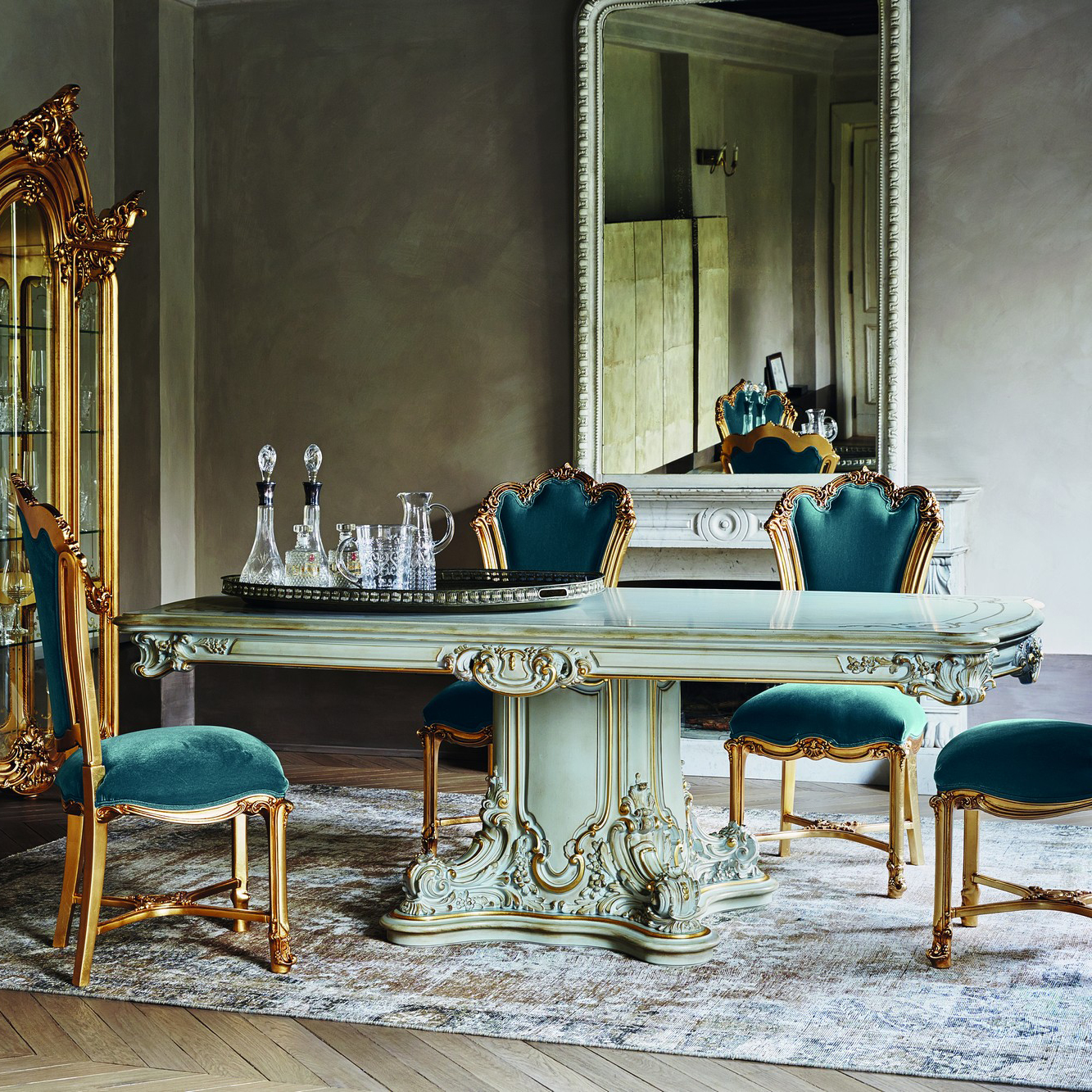 Rectangular table, wooden top with glass; 86.6″ w. x 45.7″ d. x 32.7″ h.