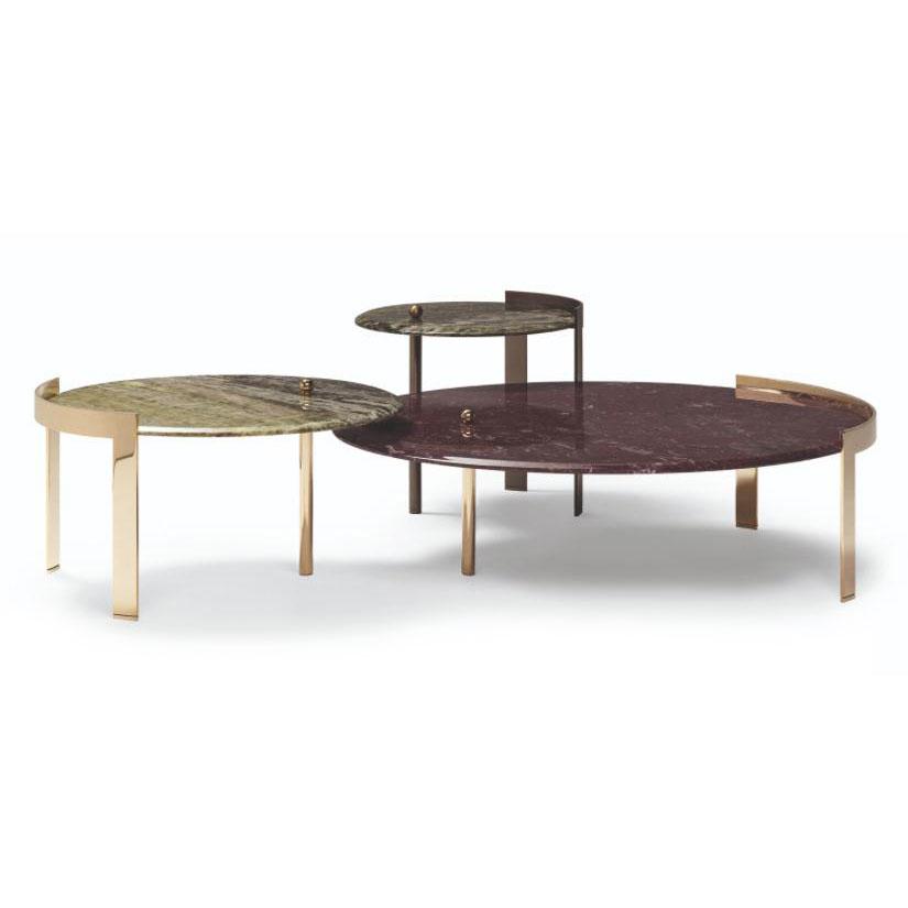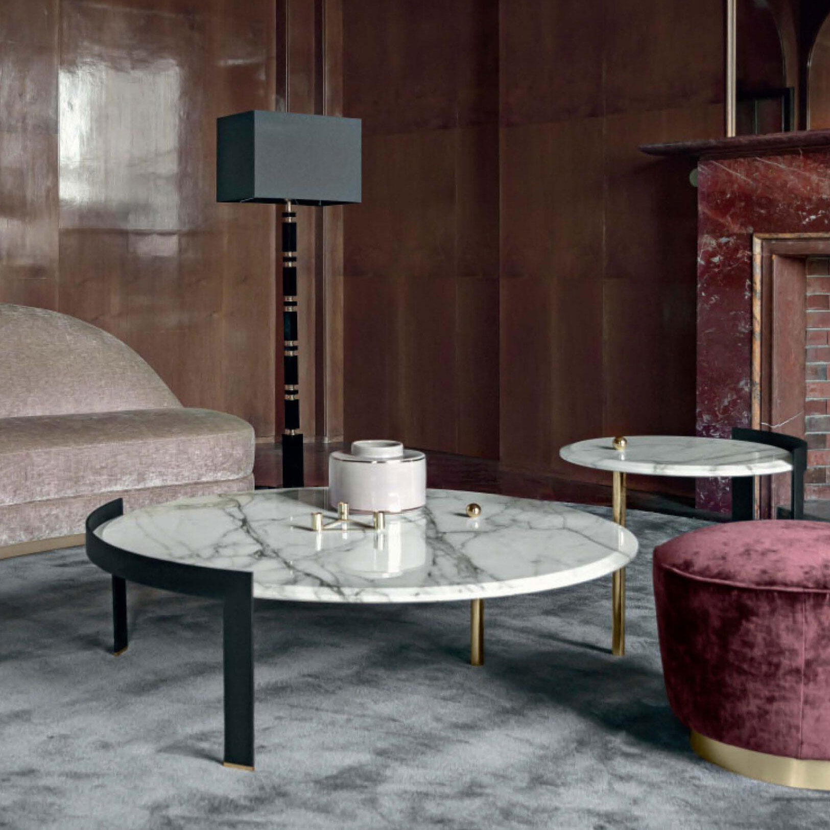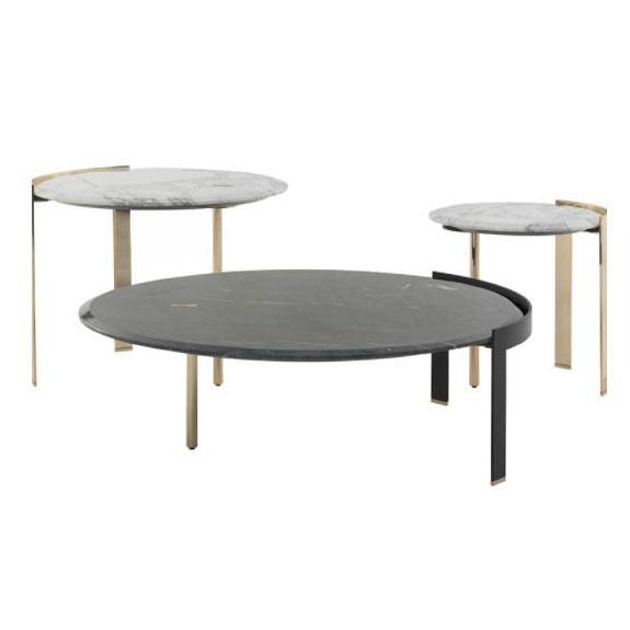 A refined line of furniture with a strong personality, the Brian collection features a metal structure paired with a graceful marble top with rounded edges. The three, asymmetric legs keep the structure light. Available in different shapes and sizes.