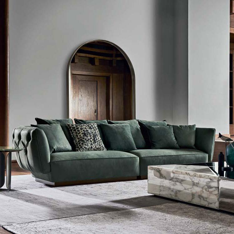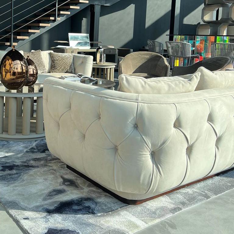 To create a living area with an impactful contemporary style atmosphere, choosing the right sofa is essential. In this sense, Simon and Ivonne represent excellent solutions : the first with a refined capitonné work on the external profile of the backrest, the second on the internal part. The models also differ in depth, to adapt to different project needs and guarantee maximum comfort. To complete the furnishings of the living area, the Callas and Sophie armchairs combine comfort and style in a perfect way, and the Cyrano, Raoul and Gabriel coffee tables give a touch of refinement thanks to their craftsmanship and the fine materials used.